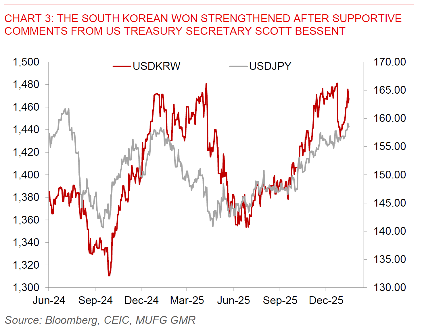 The Dollar was marginally weaker while in Asia the higher yielders such as INR, IDR and PHP underperformed, with some near-term relief on geopolitical risks even as oil prices remain around the US$66/bbl levels. The big story in Asia FX was also a combination of sharp appreciation in the South Korean won helped by supportive comments from US Treasury Secretary Bessent, while the Japanese Yen reversed some of its weakness as markets processed ongoing prospects for a possible snap election.
