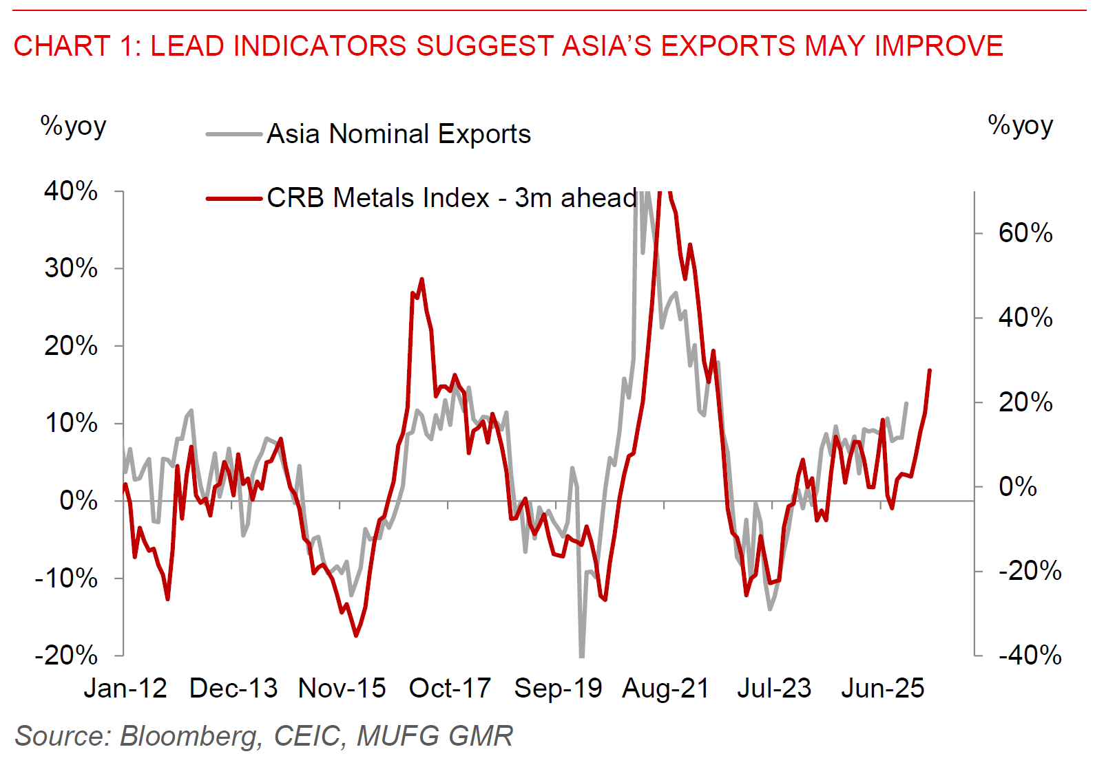 If anything, our favourite lead indicators for Asia’s exports including industrial metals suggest exports growth should accelerate moving forward. If this is right, this could be supportive of the higher beta and lower yielding Asian currencies in our region such as KRW, CNY, TWD and MYR, assuming geopolitical risk premia and oil prices fade.