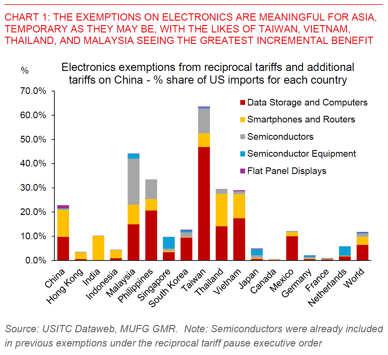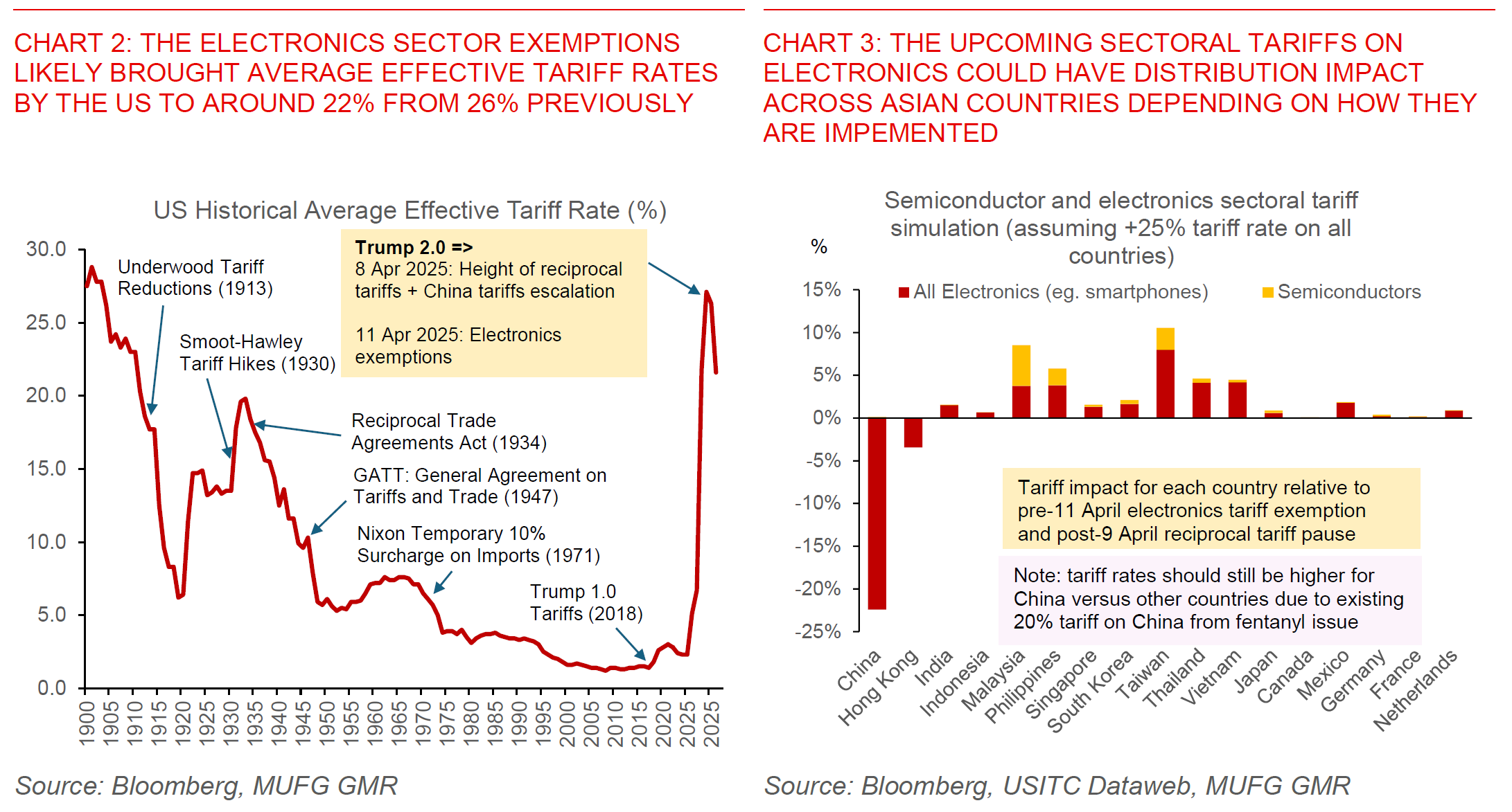 This move could also have meaningful distribution impact across Asian countries of course depending on how the semiconductor and electronics sector tariffs are imposed subsequently. Assuming there is a 25% flat tariff on these electronics products, the likes of Taiwan, Malaysia, and the Philippines could see higher tariff rates relative to China compared to the tariff exemption pause announced over the weekend.
