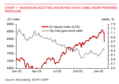 In Indonesia, the Jakarta Composite Index fell more than 7% after MSCI warned about investability and possible downgrade to frontier-market status. This relates to concerns around free float, or the number of available shares for trading, which may lead to potential price distortion. Unless authorities deliver meaningful transparency improvements by May, Indonesia faces a potential reassessment of its market accessibility classification, which could trigger a reduced weighting in the MSCI Emerging Markets Index and prompt passive outflows from Indonesian equities. Such signals typically heighten market sensitivity to foreign positioning. For the rupiah, the timing is far from ideal: IDR has historically softened when investor confidence wanes. A mitigating factor, however, is the recent softer dollar environment and Bank Indonesia’s continued emphasis on currency stability, which may help cushion downside pressures.