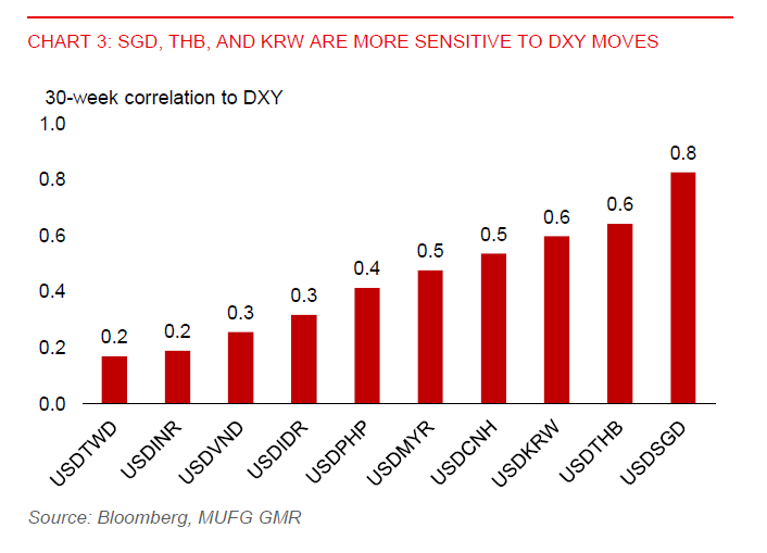 The broad US dollar index (DXY) has rebounded after Fed Chair Powell sent a hawkish signal to markets. Signs of potential de-escalation in the US-China trade war have also likely eased the downward pressure on the US dollar.. Asian currencies that are highly sensitive to DXY movements could pare back more of their recent gains against the US dollar, which has found a temporary floor (Chart 3). For instance, we think recent SGD strength may not be sustained (see Singapore: SGD strength may not be durable amid trade tensions).