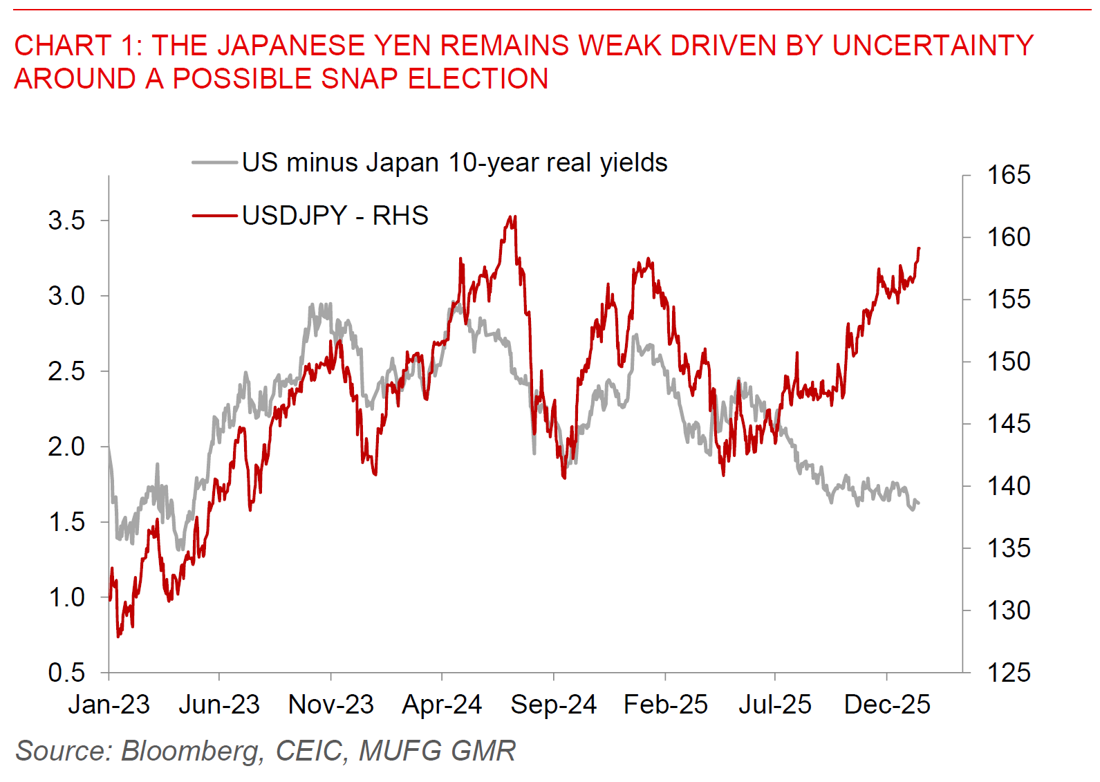 In particular, Nikkei Asia, Yomiuri and Reuters reported that Japan’s Prime Minister Takaichi is looking to inform her intent to dissolve Parliament later today on Wednesday, with 8 Feb a possible date for a snap election. A possible snap election in Japan has continued to weigh on both the Japanese Yen and Japan’s bond market, with USD/JPY rising past the 159 level and 10-year JGB yields closer to the 2.20% levels as we speak. While PM Takaichi’s popularity rating remains very high above the 70% handle, it is unclear whether and to what extent the LDP can gain more seats in the Lower House, and even here the Upper House currently remains split among various political parties.