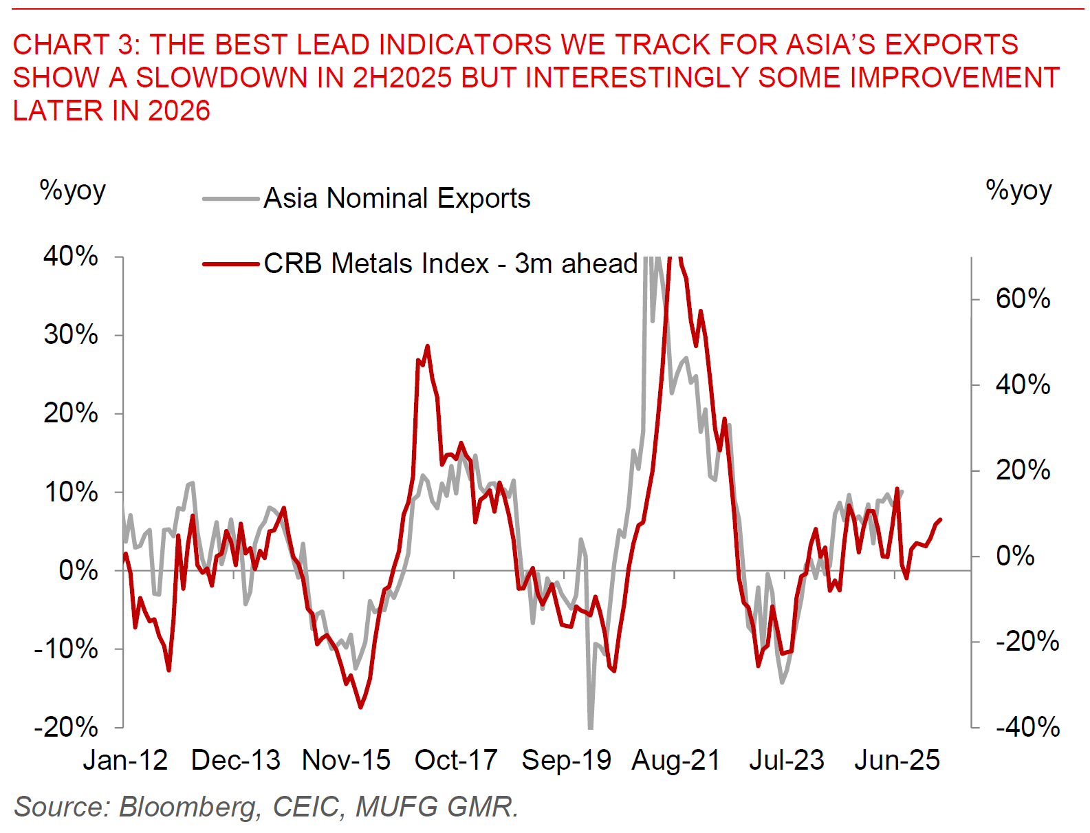 The last key important driver for markets are some of the details around how sectoral tariffs such as pharmaceuticals and semiconductors will be implemented, and with that whether Asian exports and industrial production have started to slowdown more meaningfully in September reflecting payback from tariff related front-loading. Singapore and to a smaller extent India are more exposed economies to pharmaceutical tariffs, and the implementation fine print around how companies are exempted and which products are defined as branded pharma will be extremely crucial for the outlook. Meanwhile, we will have September PMIs for China later today for both the manufacturing and non-manufacturing sector, together with China’s manufacturing PMIs, coupled with Asia’s PMI data for September out later tomorrow. South Korea and Vietnam will also release their September export numbers over the next couple of days and these will be key to gauge the initial impact from tariffs as well. The best lead indicators we track for Asia’s exports point to a slowdown in momentum in 2H2025, but interestingly some possible improvement as we head into 2026.