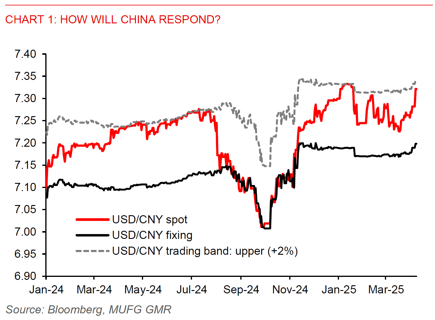 The question of how China responds is certainly also extends to CNY, and whether Chinese authorities will actively choose to devalue its currency. Before the announcement of reciprocal tariffs by the US, China has been focusing much more on keeping the USD/CNY pair stable despite volatility in the Dollar. Over the past week, there has been signs that China is gradually allowing some weakness, first by raising its USD/CNY fix to 7.1980 from 7.1793 before the reciprocal tariff announcement, and by also allowing USD/CNY to trade closer to the top end of its trading band. Our view is that Chinese authorities will unlikely see RMB depreciation as a good tool to boost the economy (see Asia: Reciprocal tariffs imply pressure on Asia growth and FX), but the market will certainly be watching closely for signs of whether that changes.