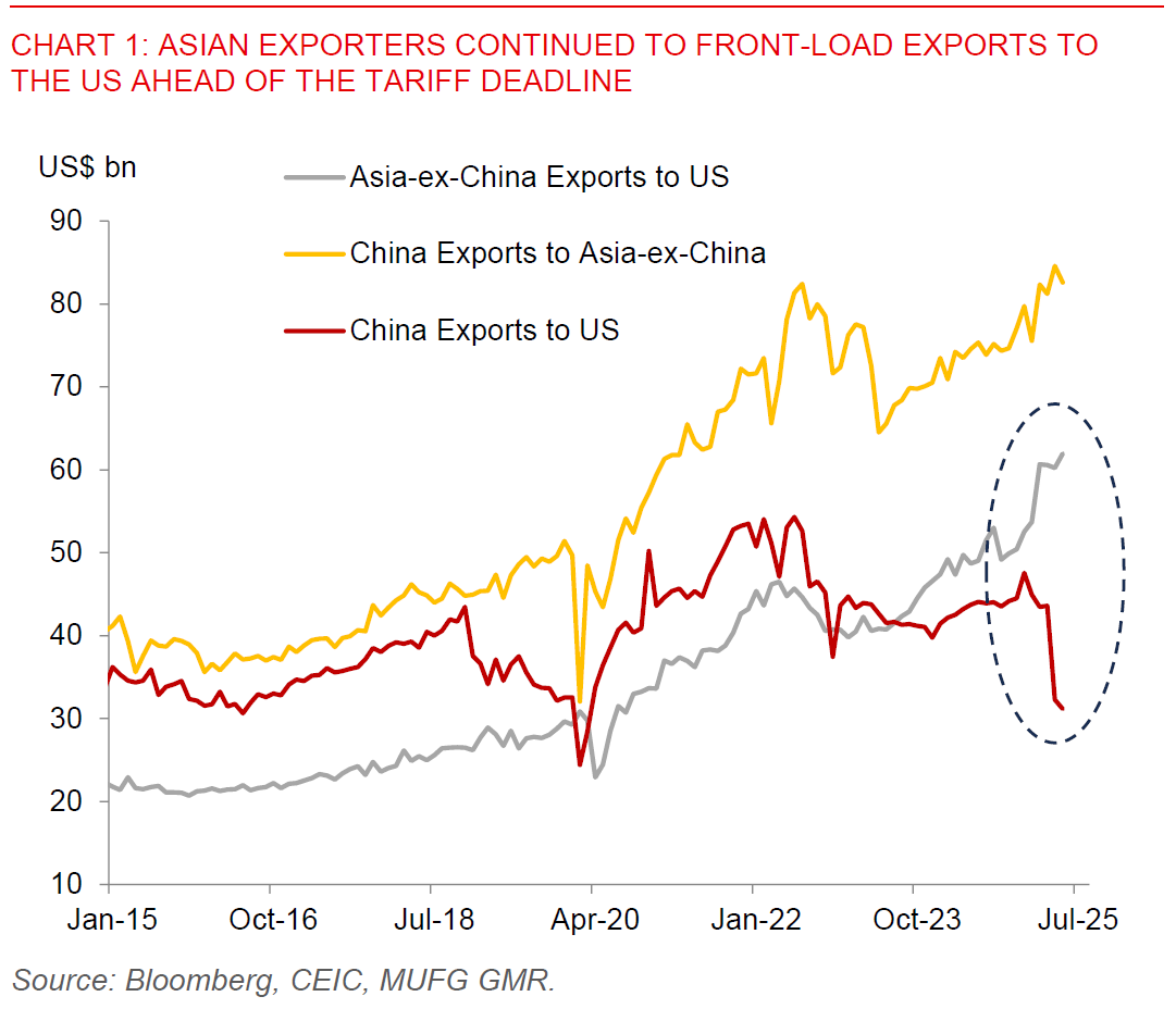 Beyond Taiwan, the macro data from Asia was slightly better than expected, with a pickup in non-manufacturing PMI from China to 50.7, a surge in Thailand’s exports for May and continued growth in South Korea’s exports. We think that quite a bit of this is due to export front-loading due to the 90-day tariff pause, and as such our base case calls for some export moderation in 2H2025 as Asia exporters see some payback later this year and as US demand increasingly slows. Nonetheless, this will also be differentiated by level of tariffs announced in the coming week across different Asian countries.