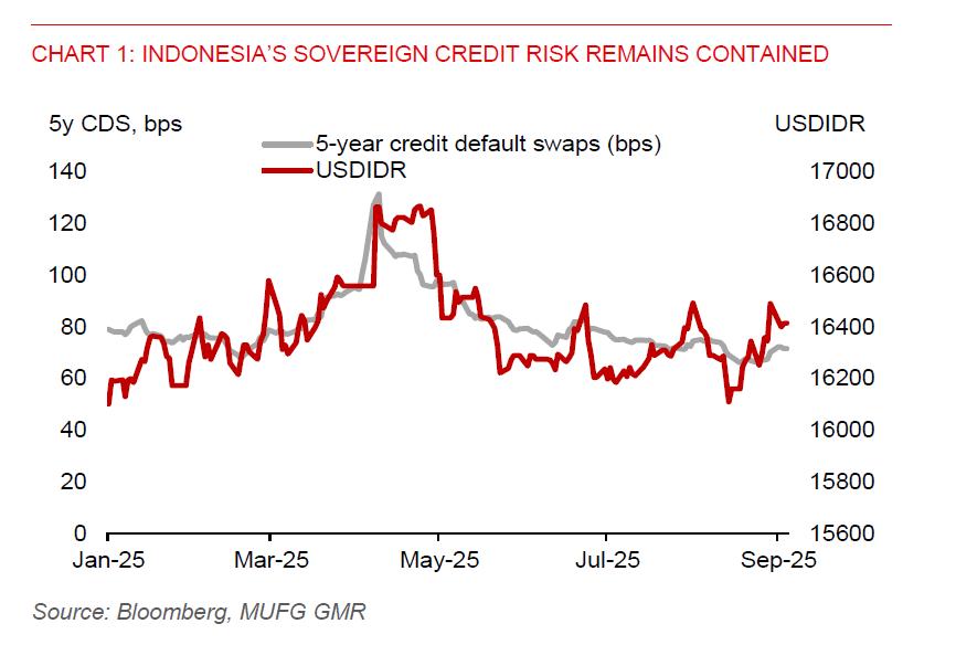 In Thailand, political dynamics have become volatile following the Constitutional Court’s ousting of Prime Minister Paetongtarn. Despite this, markets have not priced in a significant deterioration in sovereign credit risk. Anutin Charnvirakul, leader of the conservative Bhumjaithai Party, has emerged as a potential successor, backed by the People’s Party, the largest party in the lower house. Efforts by Pheu Thai to dissolve parliament and block Anutin’s potential appointment failed to secure royal endorsement. That said, Anutin will need to dissolve parliament within four months of being sworn-in, in exchange for the support from People’s Party. On the fiscal front, Thailand’s Senate has approved the FY2025 budget (starting October 1), totalling THB 3.78 trillion (USD 117 billion). The budget targets a deficit of 4.3% of GDP, aimed at supporting growth. This helps ease concerns about potential budget delays amid political instability.