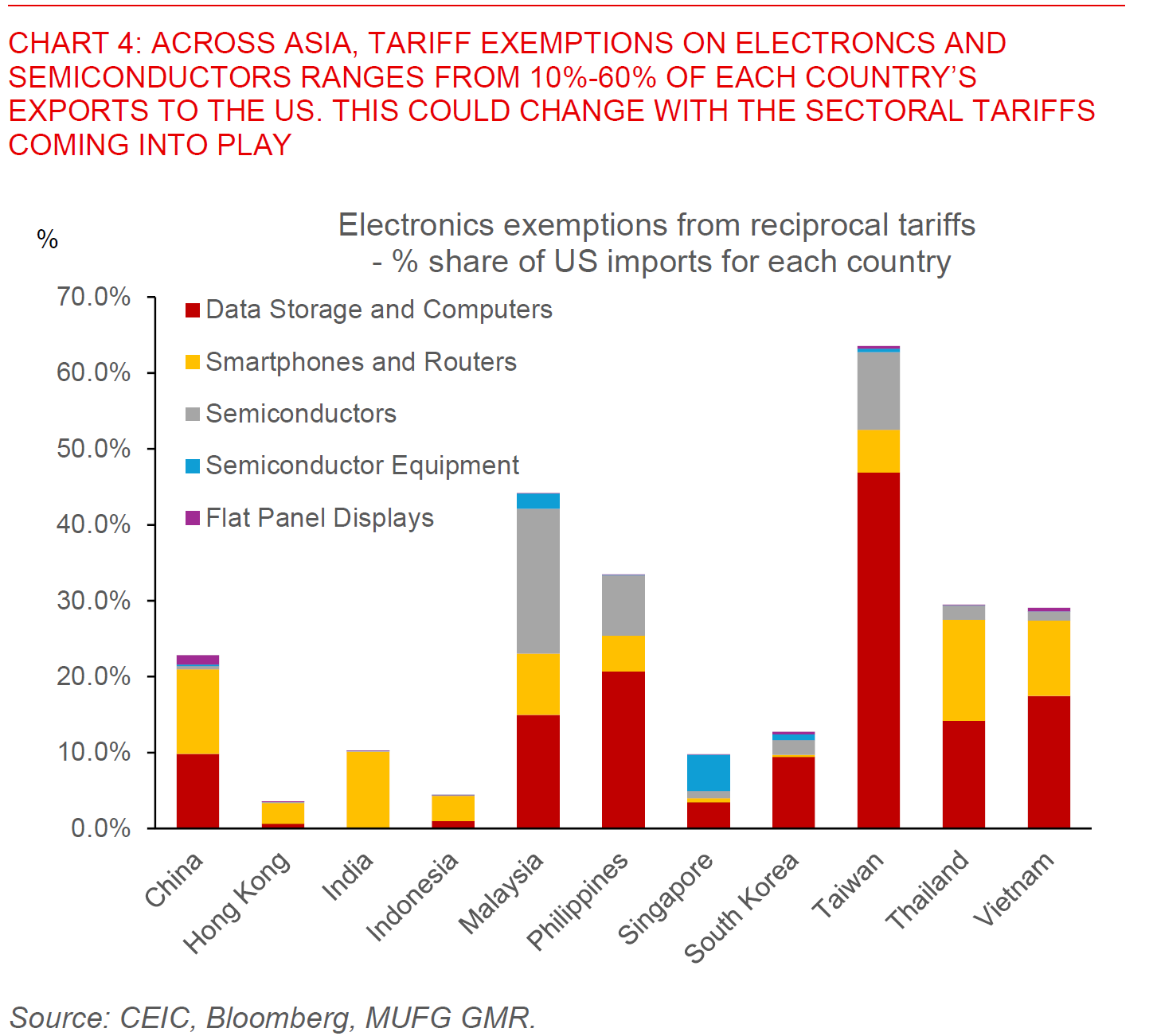 To provide some context in Asia, there are current exemptions such as on electronics and semiconductors which ranges from 10% to 60% of a country’s exports to the US depending on individual countries. The exact definitions for pharmaceuticals and other products under Section 232 investigations have not been set yet, but the trend so far seems to be a broad and expansive definition of products if the steel and aluminium tariffs are anything to go by.