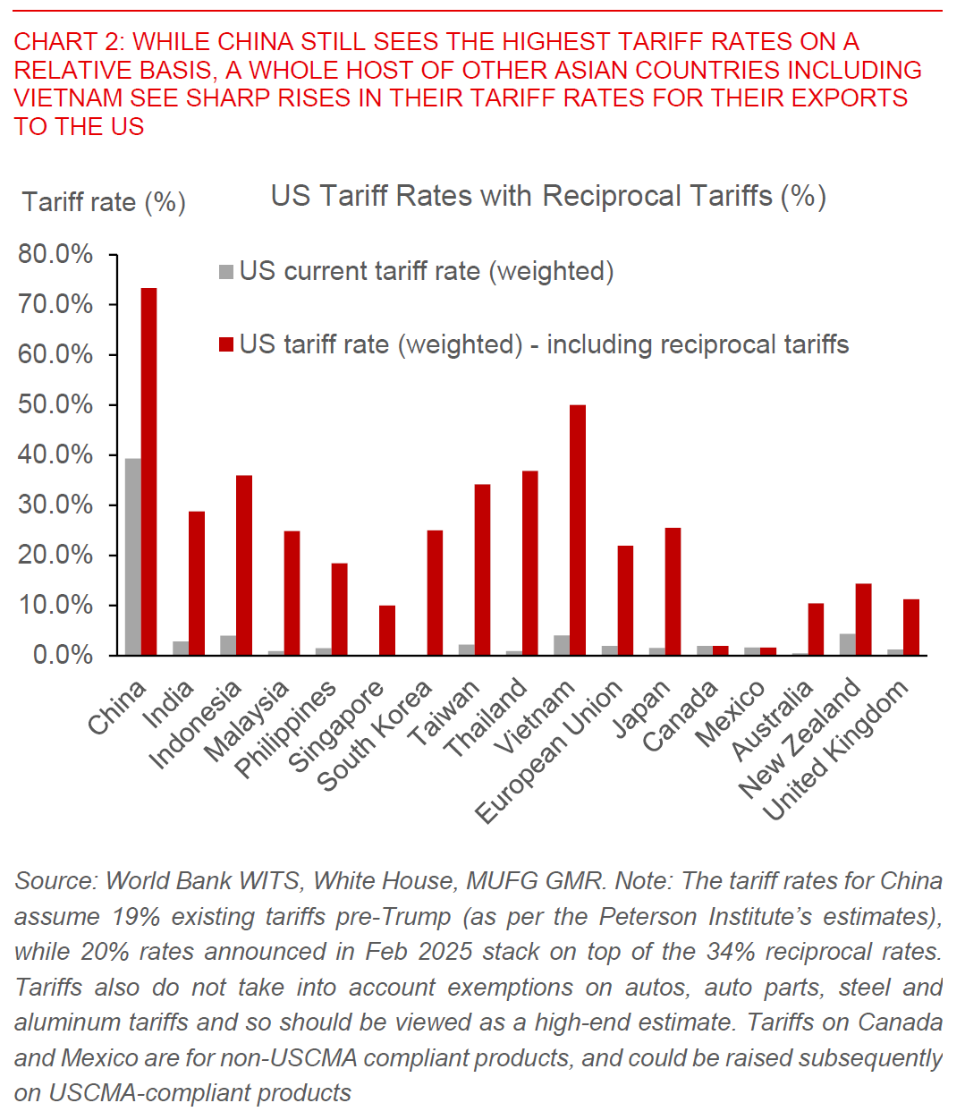 For Vietnam for example, while we have been positive on the country’s structural prospects in exports, our underlying assumption for USD/VND to rise to 25,900 by 2Q certainly did not take into account a 50% tariff rate.