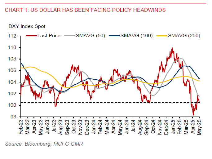 The broad US dollar index (DXY) has stayed on the backfoot, falling 0.8% in yesterday’s session. This follows from Moody’s downgrade of US sovereign credit rating by one notch to Aa1 last week. There were broad based gains for DXY constituents, notably the EUR (+0.7%) and SEK (+0.9%). ECB President Christine Lagarde said a stronger euro is not a threat but a reflection of a shift in global capital away from the US dollar and fading confidence in US economic policies.