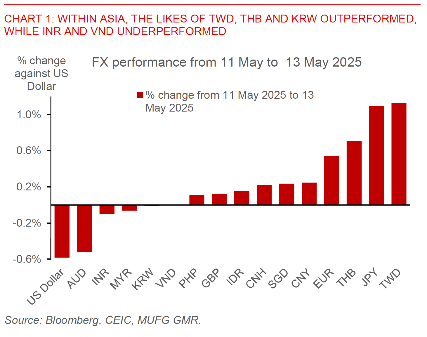 With these developments, the US dollar weakened meaningfully as markets priced in for more Fed rate cuts and risk sentiment improved, and led in the G10 space by strength in JPY and EUR, with EUR/USD in particular touching 1.1600 briefly at one point. In the Asia FX space, we saw some outperformance in the likes of the Taiwan Dollar, Thai Baht, and Korean Won, but with underperformance in INR and VND. The 0.9% FX appreciation seen in Taiwan was likely driven by a combination of foreign inflows into the equity market coupled with increased exporter USD selling, although the pace was certainly not as large as what we saw in back earlier in May. Meanwhile, the South Korean won strengthened, in the very near-term driven in part by proxy hedging from Taiwanese lifers. More generally, KRW was also helped by continued optimism over the new President’s more expansionary fiscal policies and corporate reforms including giving minority shareholders greater rights.
