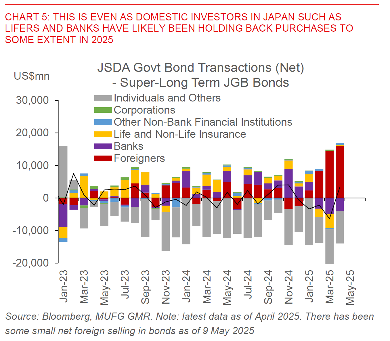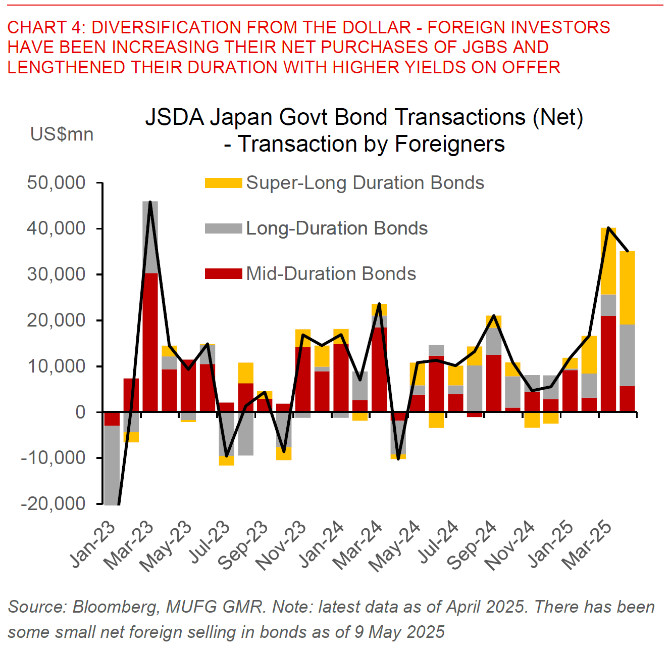 Third, diversification from the Dollar. We see this to some extent in the price action yesterday, with uncertainty on the US tax bill and trajectory of the US deficit contributing to a sell-off in both US equities and US Treasuries, but most importantly also a weaker Dollar and stronger performance in alternative safe havens such as gold and bitcoin. FX is of course importantly a relative price asset, and the best indicators (albeit still incomplete) we have suggest that there has been increasing foreign inflows into the likes of Japan, while retail investors in Taiwan and South Korea have also been modestly selling US assets, overall fitting into the broader theme of rebalancing away from US assets.