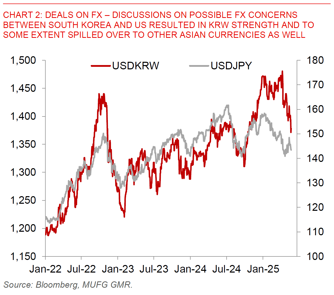 Second, possible deals on FX with the US most notably for the likes of South Korea and Japan. For South Korea, news reports suggest the US believes the fundamental cause of the trade deficit is FX, and that South Korea and the US are discussing the direction of FX in talks, but the US did not mention a specific level. With that piece of news, the South Korean won jumped to as high as 1370.75 against the Dollar, before paring back some gains, and to some extent spilled over to the likes of TWD and JPY.
