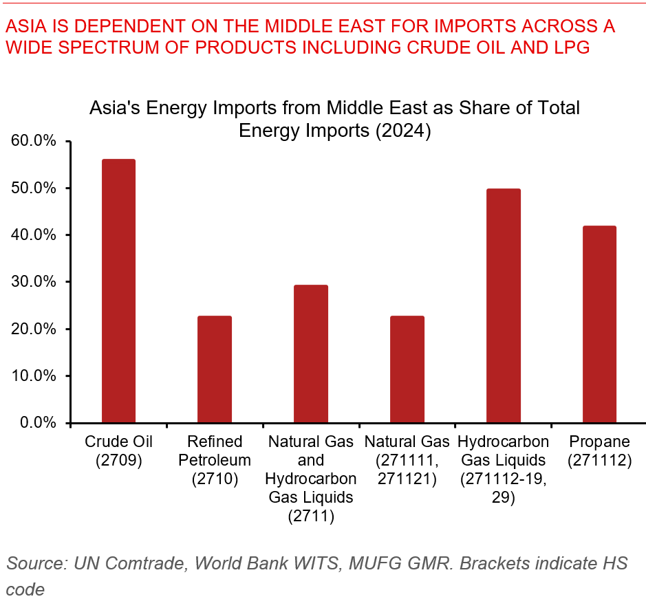 Asia is dependent on the Middle East for imports across a wide spectrum of products including crude oil and LPG