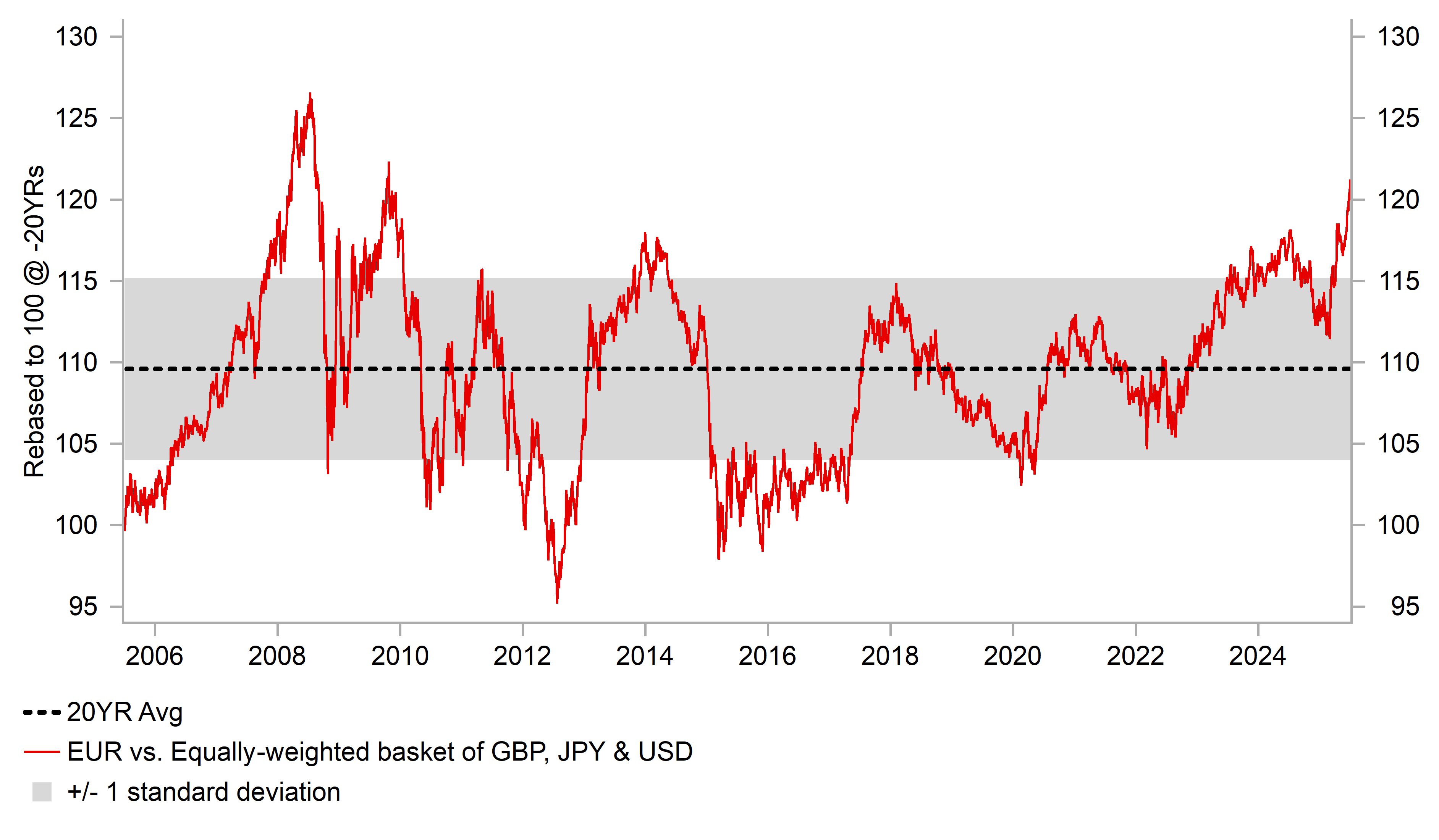 The euro has continued to strengthen against the other major currencies hitting fresh highs yesterday against the US dollar, pound and yen. It has lifted EUR/USD back above the 1.1800-level, EUR/GBP up closer to the 0.8600-level and EUR/JPY to within touching distance of the 170.00-level. The euro has strengthened sharply by around 7.5% against an equally-weighted basket of the pound, US dollar and yen since the end of February. It is the strongest period of euro appreciation since between May 2020 and January 2021 during the initial strong global economic recovery from the COVID shock in early 2020. Recent strong gains for the euro are starting to attract more attention from ECB policymakers. Dovish Governing Council member Simkus stated that the “inflation outlook remains fragile”. He judges that there is a bigger risk of an inflation undershoot of the ECB’s target and stressed that they must monitor the speed of euro appreciation. In contrast, hawkish Governing Council member Nagel stated that “in the current situation, we are in calm waters”. He wants to wait to see the next round of ECB staff quarterly economic projections and incoming data before making a decision on whether to lower rates further in the autumn. He also downplayed the disinflationary impact from the stronger euro stating it is “only one factor”. He is hopeful that tariff negotiations with the US are “coming to a good end”.