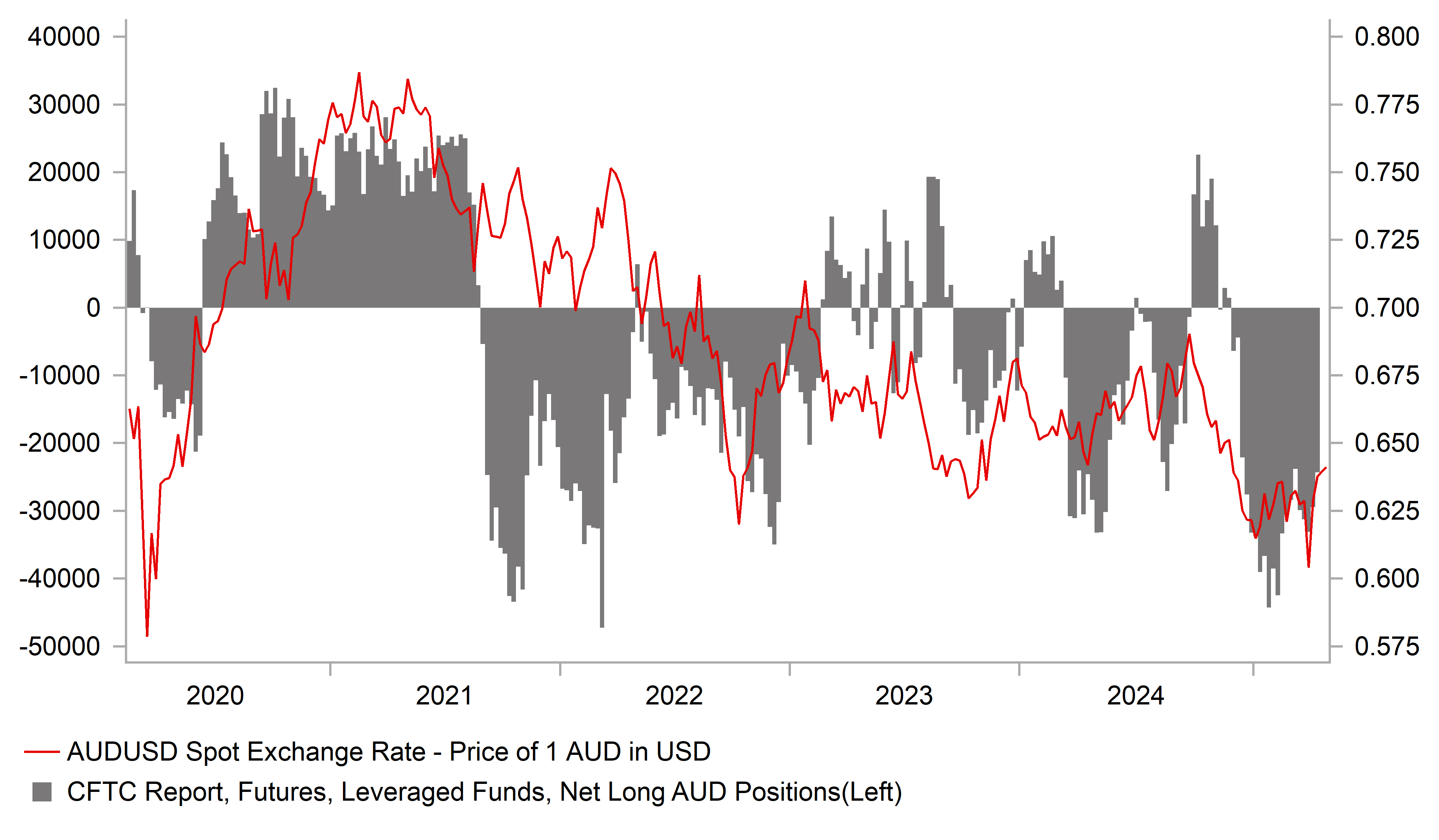 CFTC POSITIONING INDICATE CONVICTION AMONGST LEVERAGED FUNDS FOR AUD TO WEAKEN