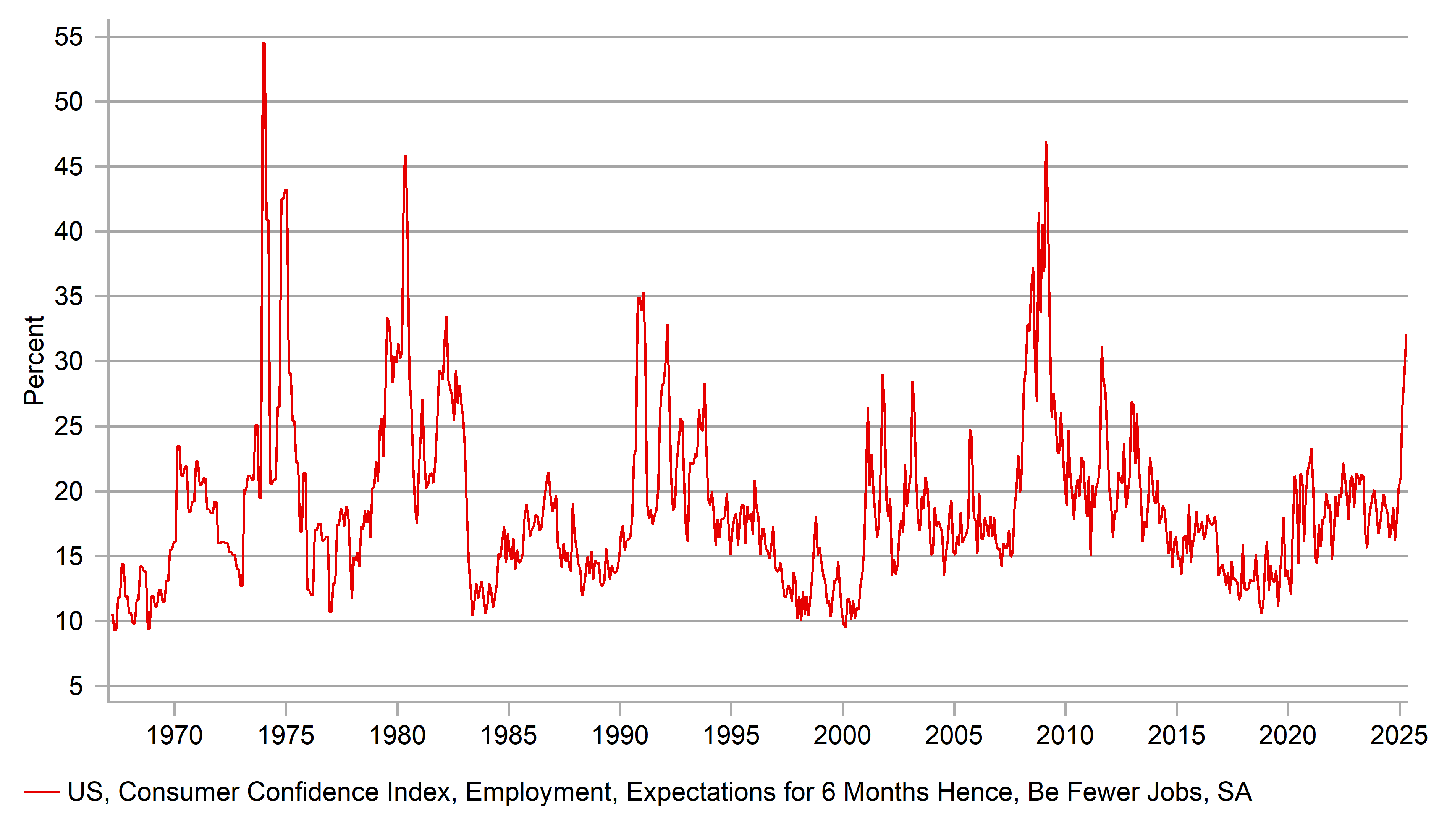 US CONSUMER EXPECTING FEWER JOBS IN 6MTHS HAS SURGED