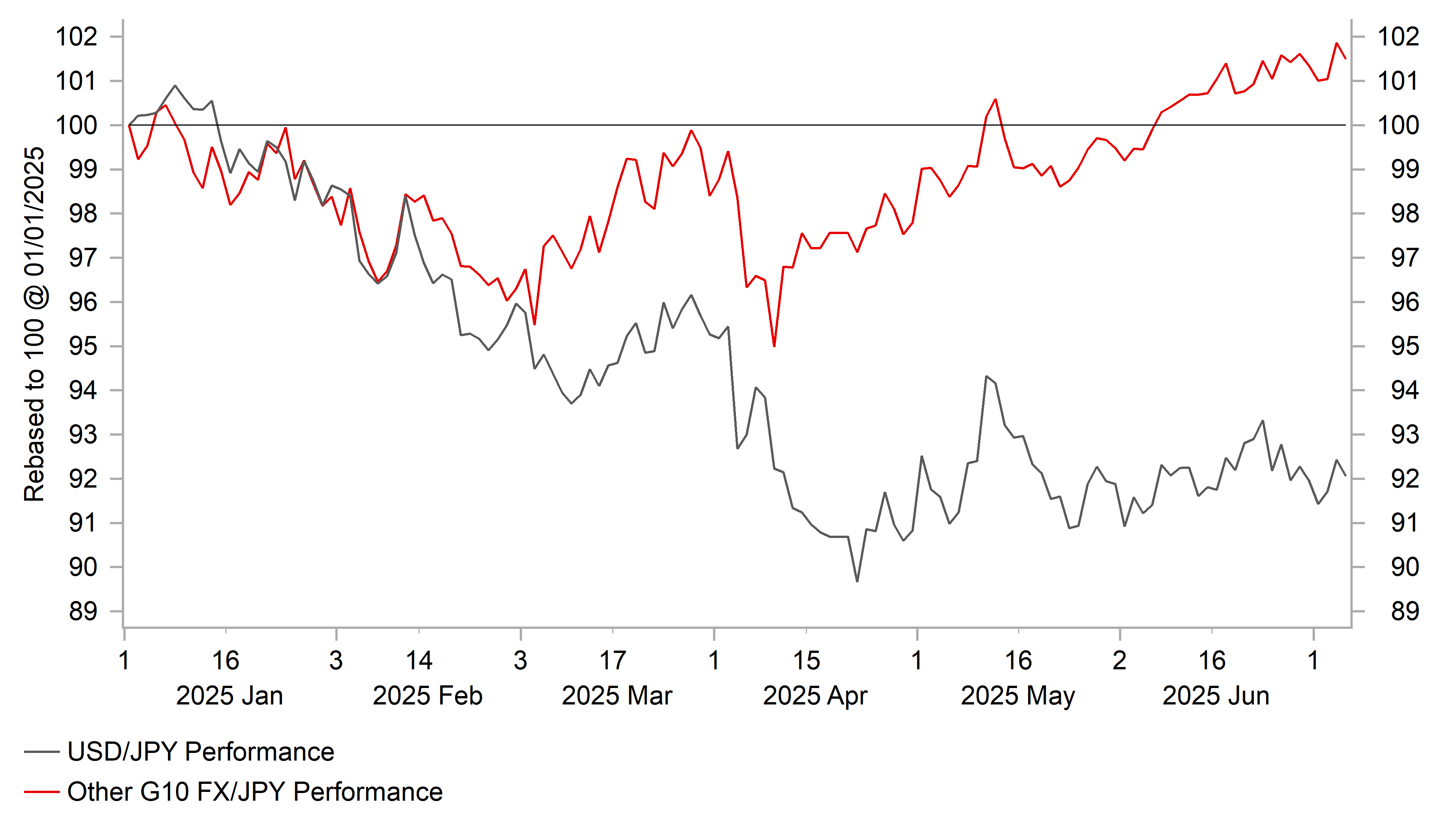 JPY HAS WEAKENED AGAINST OTHER (NON-USD) G10 FX THIS YEAR