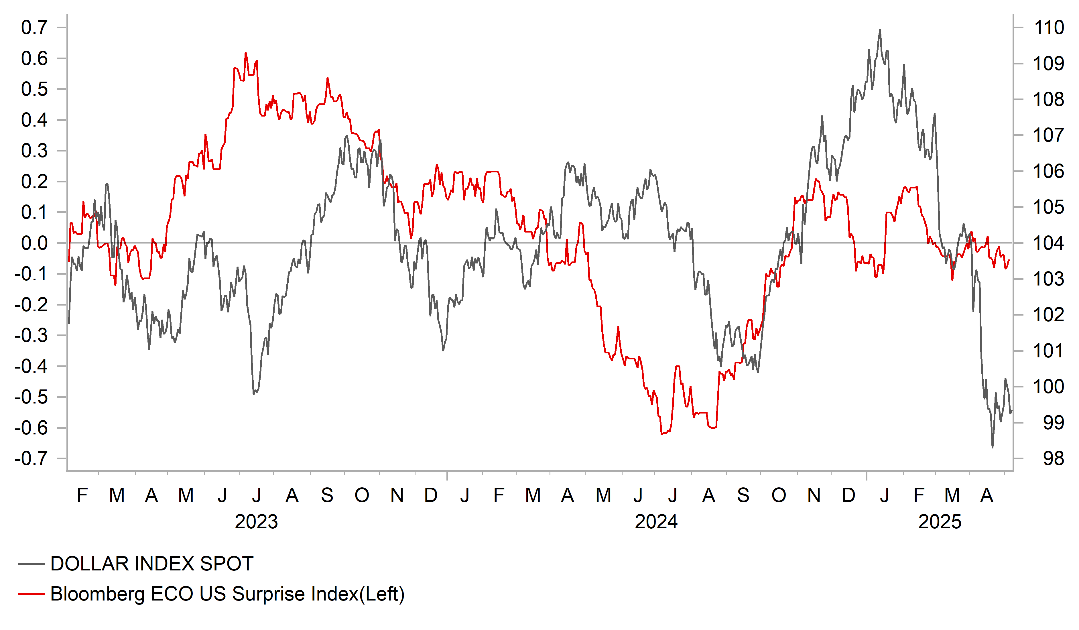 Since the start of April, the 2-year EU-US yield spread has moved 10bps in favour of the US but over the same period EUR/USD has advanced by 4.8%. So it is questionable to argue that a hawkish Powell tonight will lift the dollar. In essence, it is the uncertainty over policy and the strong expectation (in the Beige Book for example) that the economy is going to weaken that will prevail and so risks remain skewed to the dollar staying weak or weakening further.
