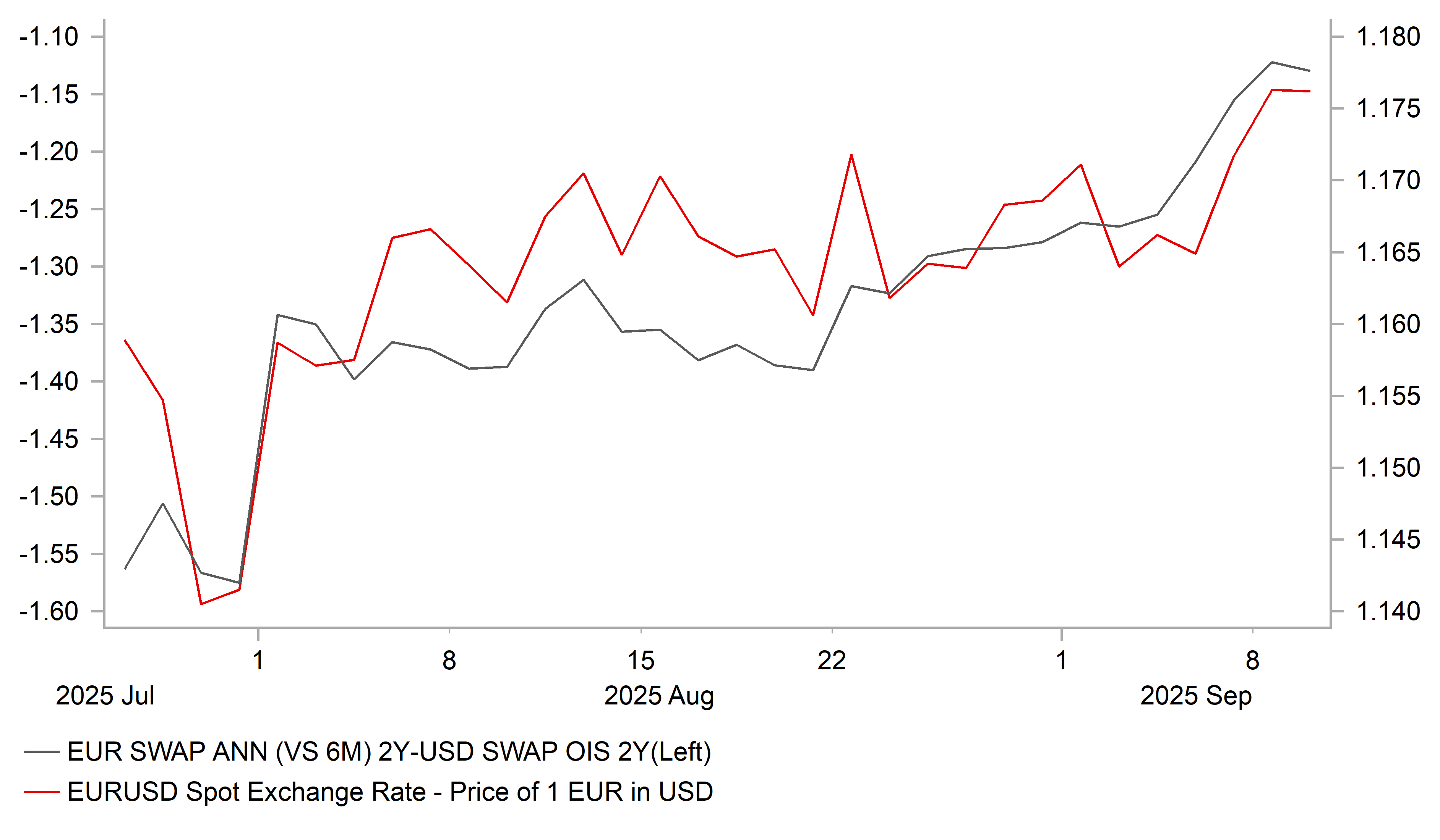 President Macron now has the sole responsibility for picking the new premier, and there is no constitutional time limit for a decision. For comparison, it took President Macron two month to appoint former Prime Minister Michel Barnier and just over a week to name current Prime Minister Francois Bayrou. President Macron is now seeking his fifth prime minister in less than two years. Reports suggest that President Macron is reluctant to call a snap parliamentary election to break the deadlock. According to Bloomberg, that leaves President Macron with a number of options including: i) picking another centrist like PM Bayrou such as Defence Minister Sebastien Lecornu, ii) picking from the left such as Socialist leader Olivier Faure and ii) picking a technocrat such as French central bank governor Francois Villeroy de Galhau. While the political uncertainty is an unfavourable development we continue to believe that it is unlikely to be sufficient on its own to trigger a weaker euro.