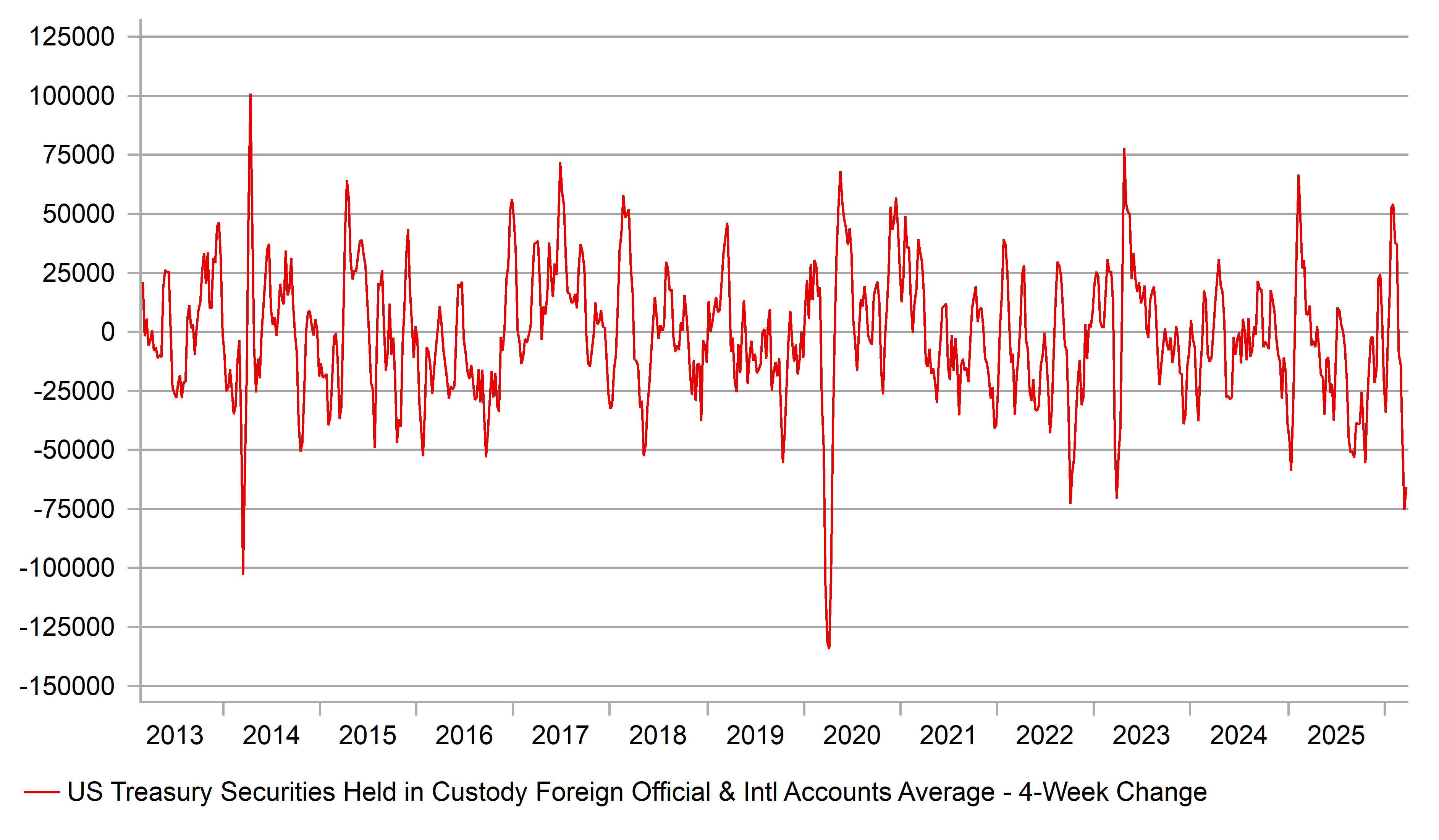 So, the recovery in risk is likely to remain fragile with doubts set to return over the improvement in energy supply conditions. What we would say though in relation to FX is that the US dollar will look even more vulnerable following this conflict (again if it ends like being suggested). The decision to attack Iran will leave the region extremely unstable and inflation risks will likely continue to undermine the Trump administration ahead of the mid-terms in November. Data above shows the largest reduction in custody holdings of UST bonds held by foreign central banks at the Federal Reserve since covid in 2020 and prior to that since 2014. Fiscal risks are set to worsen and the whole topic of confidence in US assets is likely to re-emerge in the period following an end to this conflict that likely means a quick reversal of recent US dollar strength and the resumption of the trend of US dollar depreciation – consistent with the forecasts we published in March and in our updated FX Outlook report to be published today.