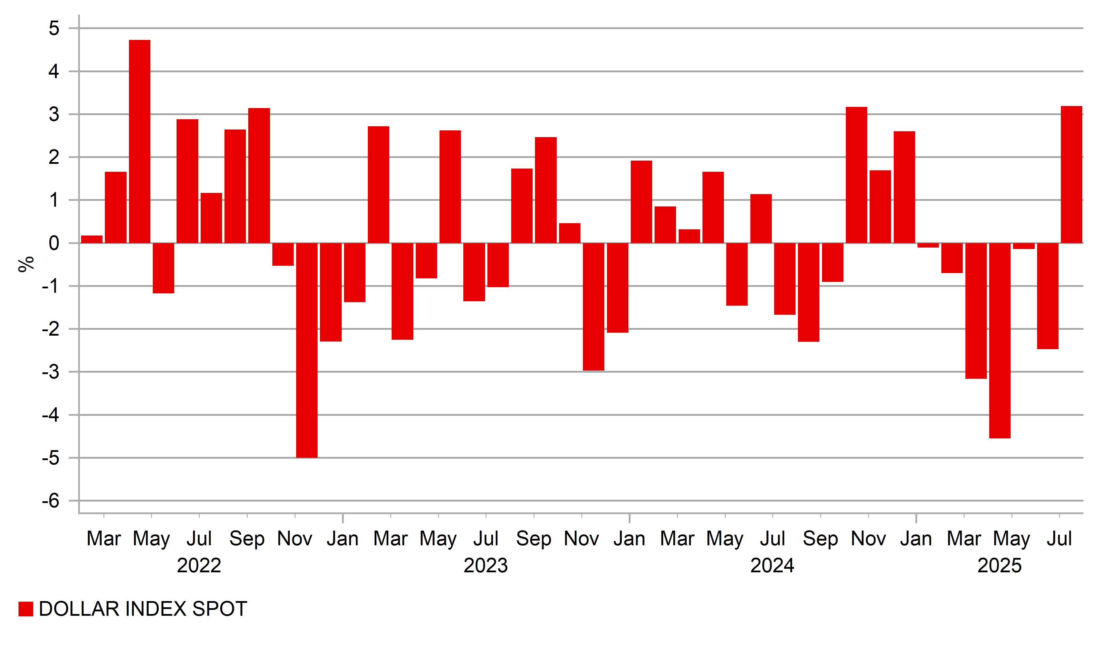 MONTH-ON-MONTH US DOLLAR – BIGGEST MONTHLY GAIN SINCE APR 2022