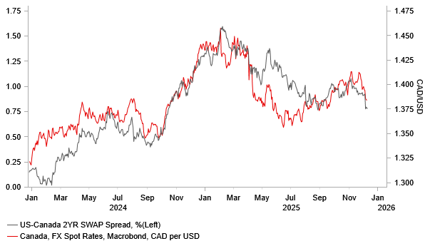 SHORT-TERM RATE SPREAD MOVES SUPPORTIVE OF CAD GAINS AS MACRO BACKDROP IMPROVES IN CANADA