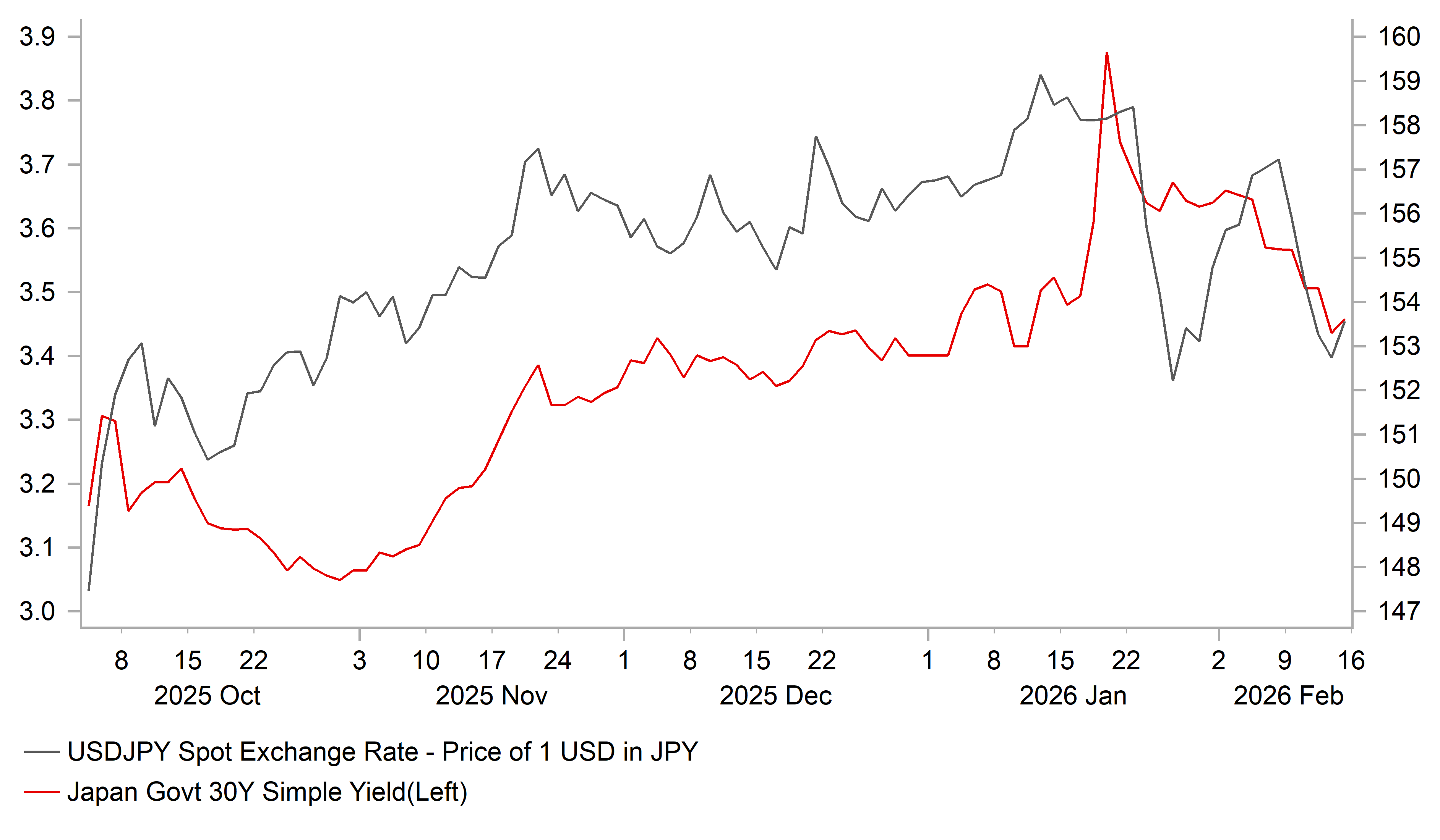 The yen is on course to be the best performing G10 currency this week. After initially selling off at the start of this week after the Japan election results, USD/JPY has since fallen sharply hitting a low yesterday of 152.27. It appears to be another example of buy the rumour, sell the fact as the yen failed to weaken further after PM Takaichi strengthened her grip on power in Japan. It has likely encouraged speculators to further scale back short yen positions that have been built up in recent months. Similarly, the rebound in JGBs highlights that market concerns over fiscal risks in Japan have also eased helping to recover some lost ground. The rebound in the JGB market has been most evident at the ultra long-end of the curve. The 30-year JGB yield is now close to flat year to date after rising by close 50bps at the worst point on 20th January after PM Takaichi pledged to freeze the sales tax on food for two years. While she has indicated that she still plans to go ahead with the freeze since winning the election, market participants are no longer as concerned over the fiscal risks.