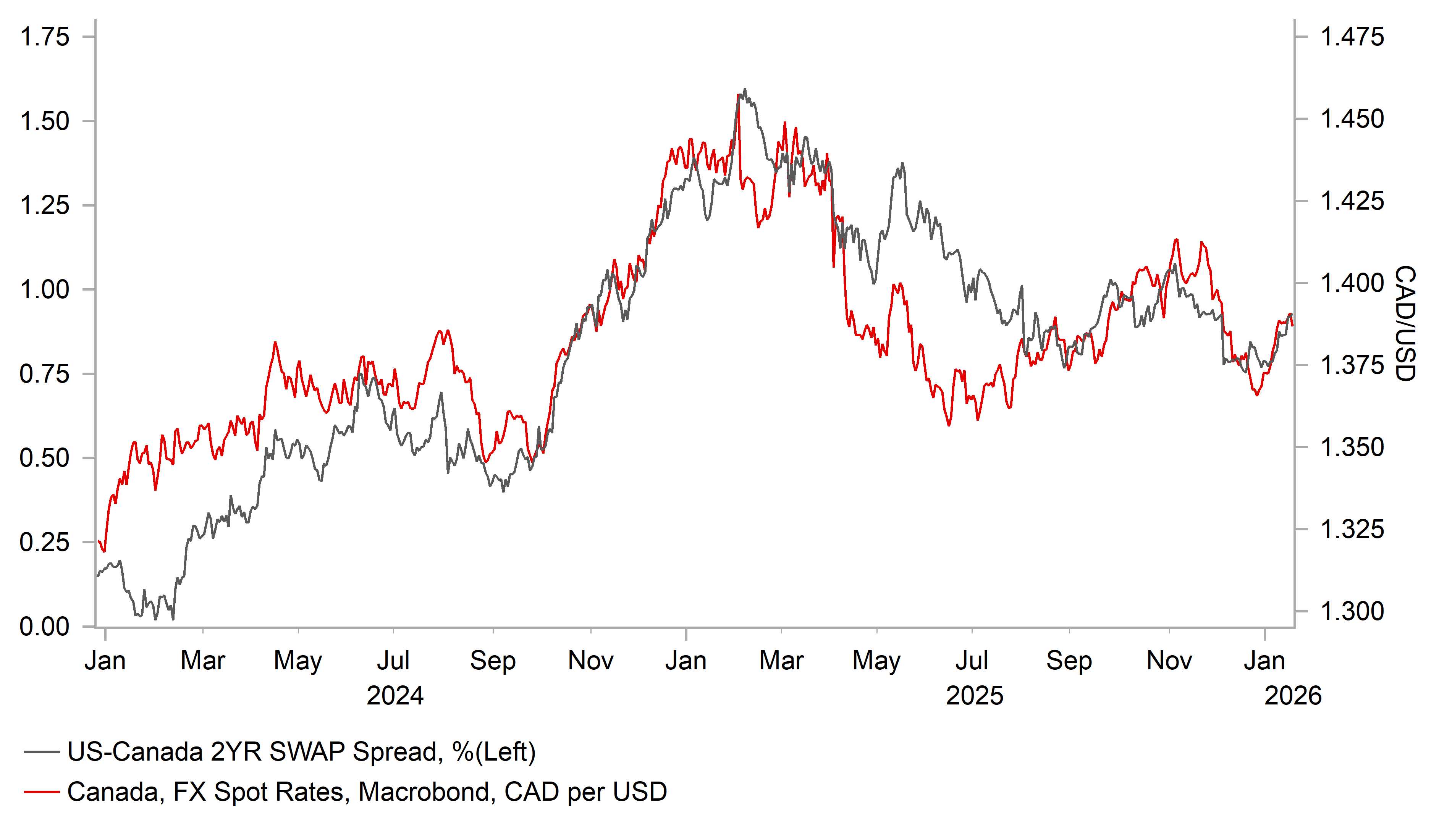 In that scenario, USD/CAD should remain in a relatively tight trading range and initially if the conflict was to last longer and crude oil prices were to jump further beyond the USD 100-level then CAD support from the terms of trade dynamic could start to fade if North America growth risks increase and equity markets take a hit. Risk-off would start to play a greater role that would see USD/CAD move to the upside. For now that is not our base case and while we remain in the relatively early stages of this conflict, we expect the BoC to steer clear of any clear guidance on the policy outlook.