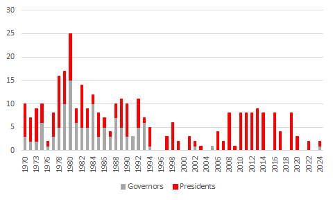 FOMC VOTING DISSENTS BY CALENDAR YEAR – GOVERNORS & PRESIDENTS – GOVERNOR DISSENTS HAVE BEEN RARE SINCE MID-1990’S