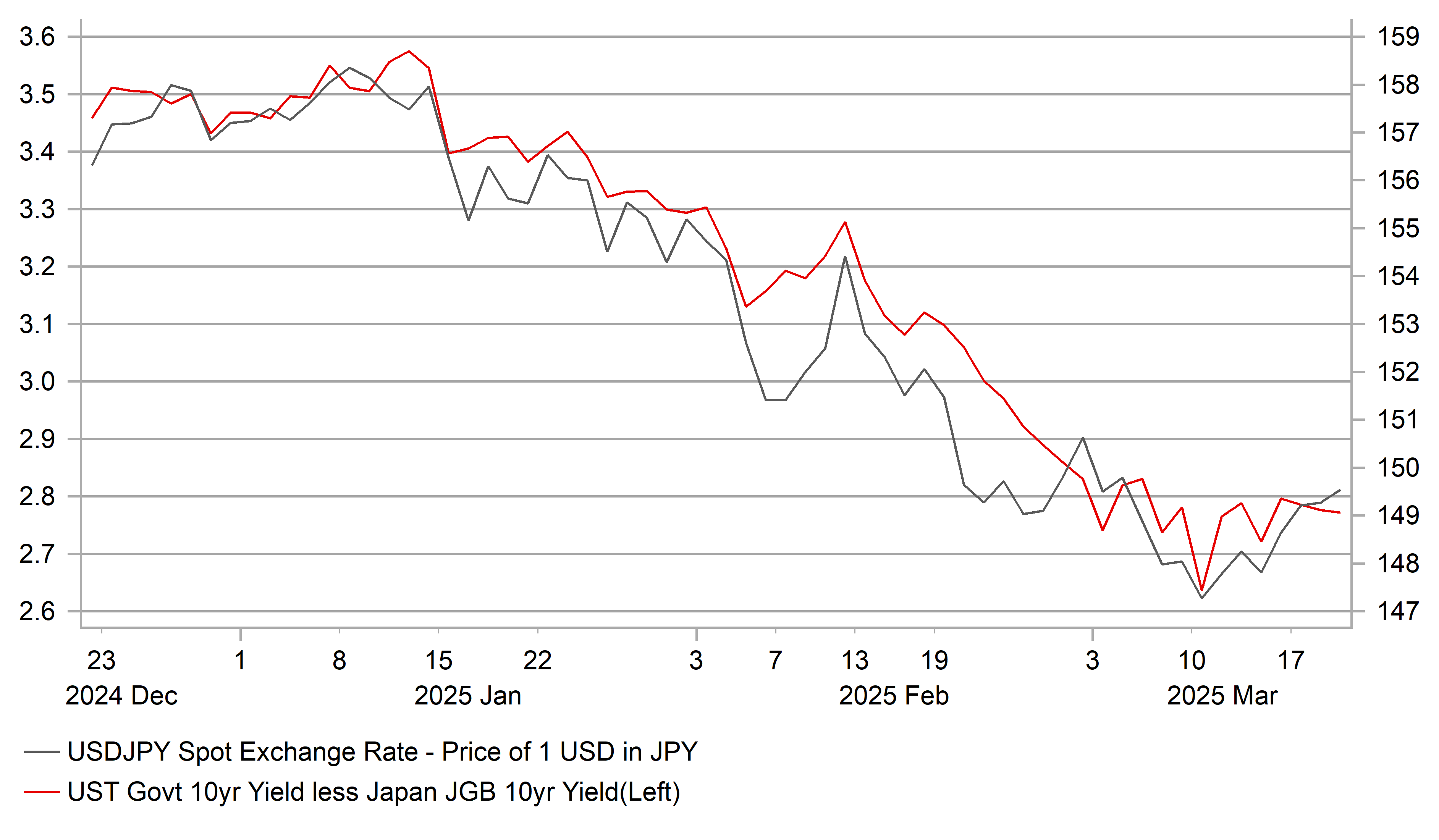 The US dollar is trading close to recent lows ahead of today’s FOMC meeting with the dollar index trading near the lows from the day of the US election on 5th November at 103.37. US dollar selling has continued at the start of this week even as US yields have been staging a modest rebound. The 2-year and 10-year US Treasury yields have picked up to 4.06% and 4.35% respectively helping to move yield spreads back in favour of the US dollar. Today’s FOMC policy update will be important in determining whether US yields continue to bottom out in the near-term. US yields have been supported ahead of the latest FOMC meeting by the release yesterday of the US import prices report for February.