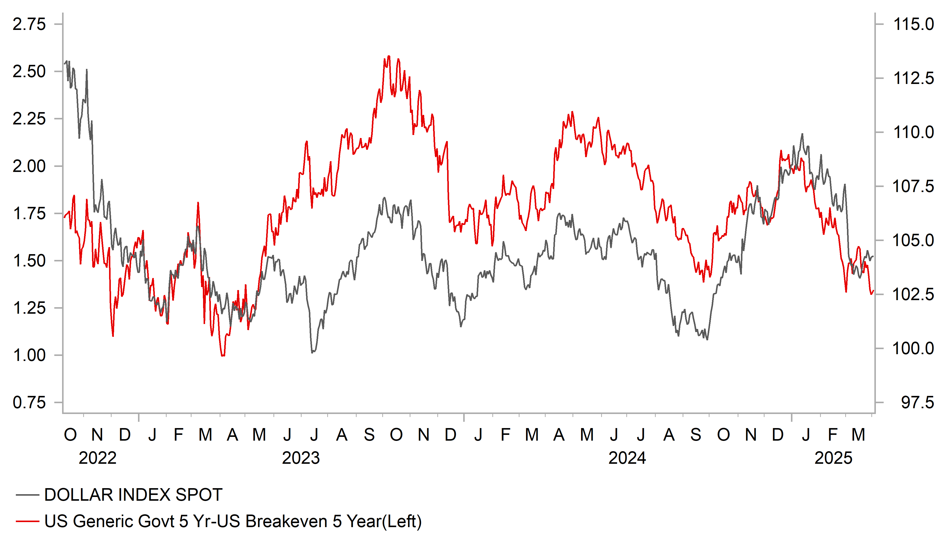 If this mix of economic data persists, what would it mean for the FOMC? There would surely be greater initial risks of the FOMC delaying a decision to cut rates again. Market pricing implies a still high degree of confidence of a rate cut in June (80% probability) but whether the FOMC will have had enough inflation info to be confident of only a temporary impact from tariffs is questionable. Chicago Fed President Goolsbee stated yesterday in an interview that tariff-related uncertainty “is tinged with fears over inflation” given it will be difficult to determine how lasting an inflation impact might be. We still expect the FOMC to cut two-to-three times this year although there are risks that the FOMC could delay longer than implied by market pricing and that could add to the potential for the dollar to recover over the coming months.