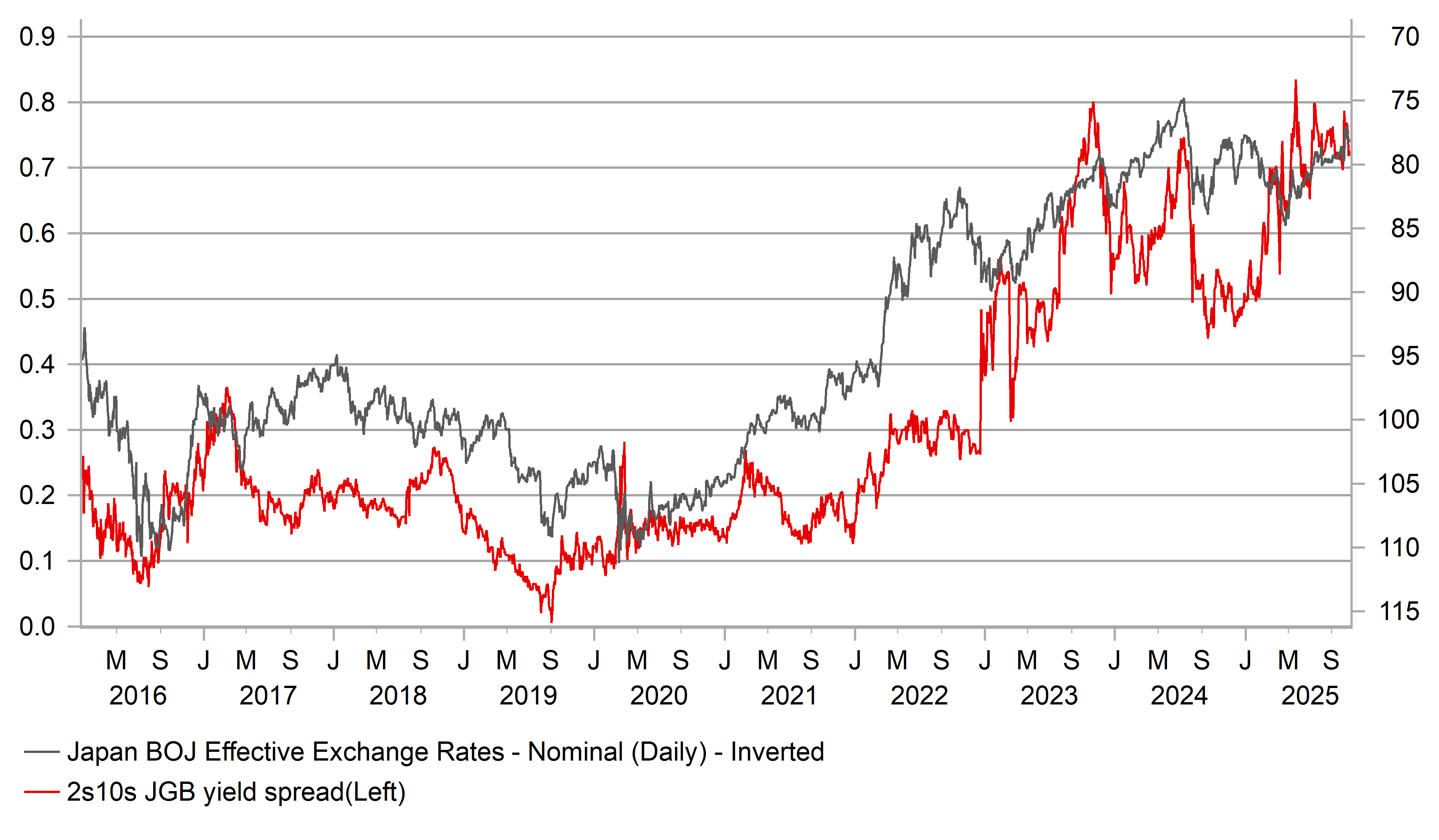 So our sense at this stage is that there are greater signs of policy continuity than was originally feared and hence the ‘Takaichi trade’ of selling JGBs and the yen may be peaking. That’s not to say that the yen is about to rebound and take out the yen weakness in response to Takaichi’s victory but more that the policy approach being more balanced will deter further yen selling. The victory of Takaichi has had an impact on BoJ policy – a rate hike was much more likely in October prior and the timing has been pushed back to at least December or January.
