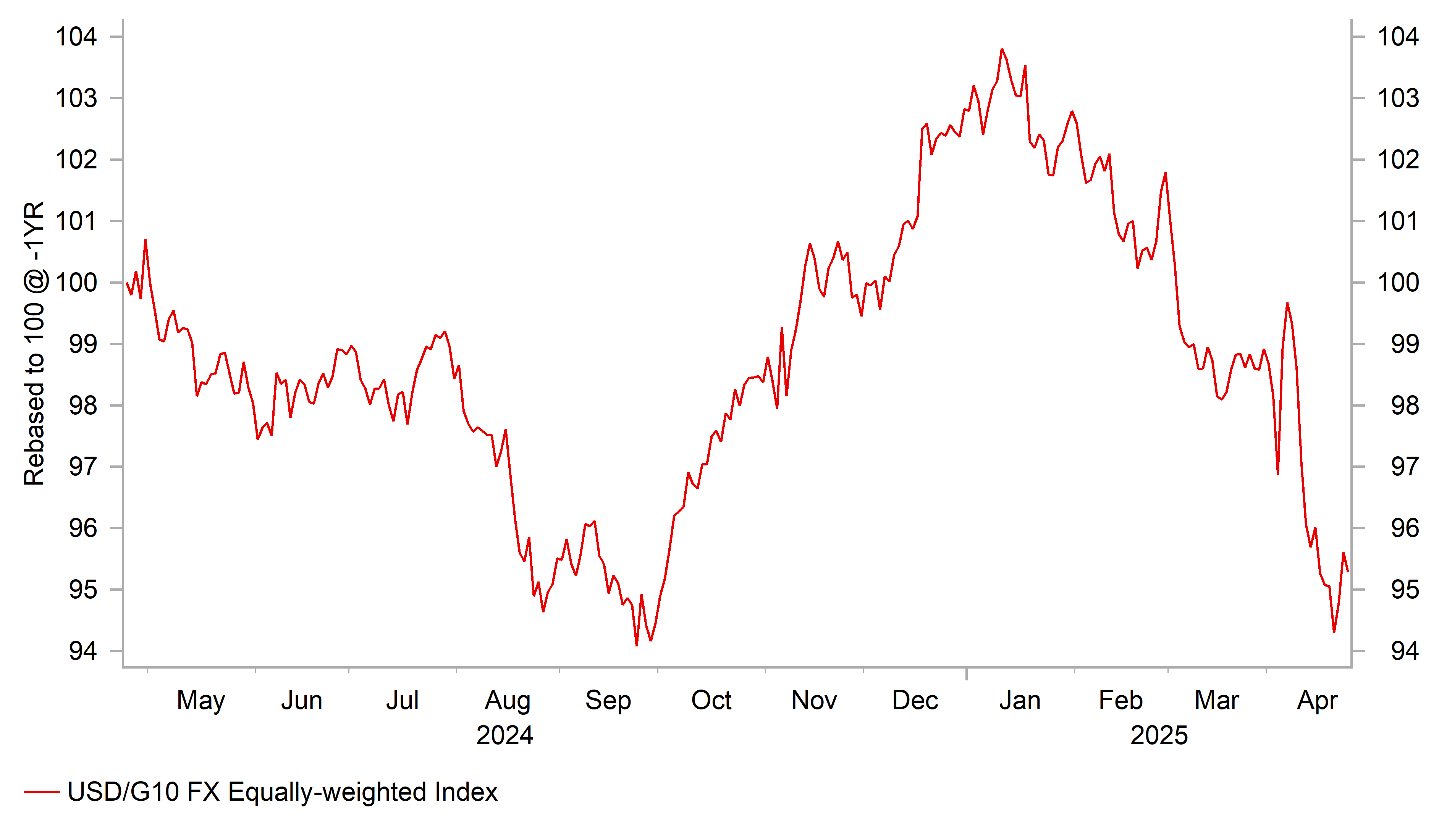 The Trump administration is also moving to put in place carve outs to help dampen disruption from trade tariffs for the US economy. Recently imports of smartphones and other electronic products were excluded from tariffs. Bloomberg has reported as well overnight that US officials are now considering whether to reduce certain tariffs targeting the auto industry. The report suggests that the US could spare automobiles and parts already subject to tariffs from facing additional duties from levies on steel and aluminium. Another option being studied would be to fully exempt auto parts that comply with the USMCA trade pact. Those components don’t currently face tariffs but the Trump administration had planned to tax the non-US share of those parts from Canada and Mexico. The Financial Times had also reported that the Trump administration might exempt auto parts from China from the 20% tariff applied over the fentanyl border dispute. While further steps to water down/reverse tariffs would be positive developments, we are not convinced that recent developments are sufficient yet to support a more sustained rebound for the US dollar at the current juncture.