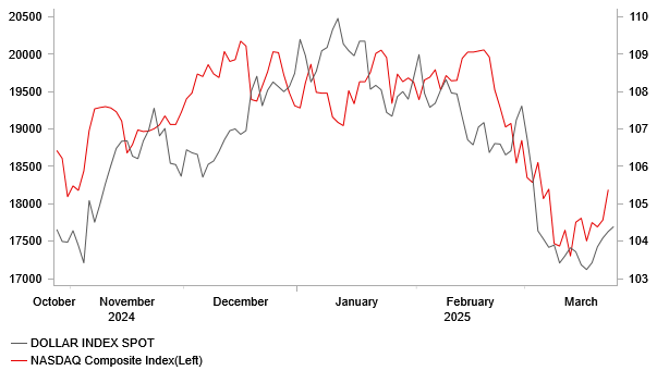 The US dollar has continued to strengthen at the start of this week resulting in the dollar index recording its fourth consecutive day of gains yesterday. It helped to lift USD/JPY back above the 150.00-level and EUR/USD below the 1.0800. The US dollar has been supported both the by the pick-up in US yields and strong gains for the US equity markets. The Nasdaq composite index closed sharply higher by 2.3% yesterday rising back above the 18,000-level for the first time early March adding to investor confidence that a near-term bottom is now in place after the recent heavy sell-off. The strong improvement in investor confidence came on the day that it was reported President Trump would take a more targeted approach for “reciprocal tariffs” which would help to ease the risk of economic disruption. President Trump stated as well that “I may give a lot of countries breaks” indicating that he may grant possible exemptions or reductions in tariff rates for chosen countries.