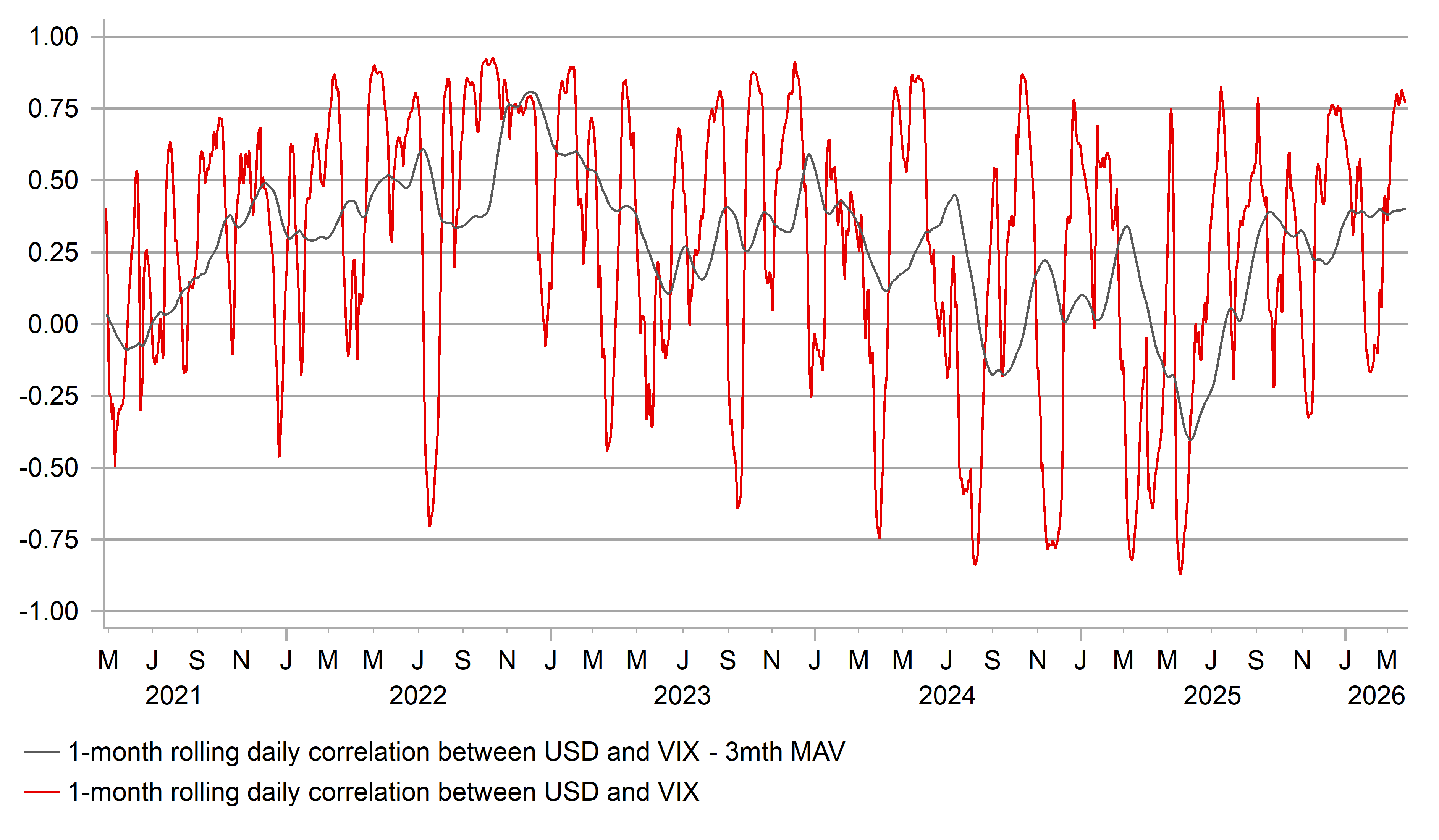 USD CORRELATION WITH VIX IS STRONGLY POSITIVE