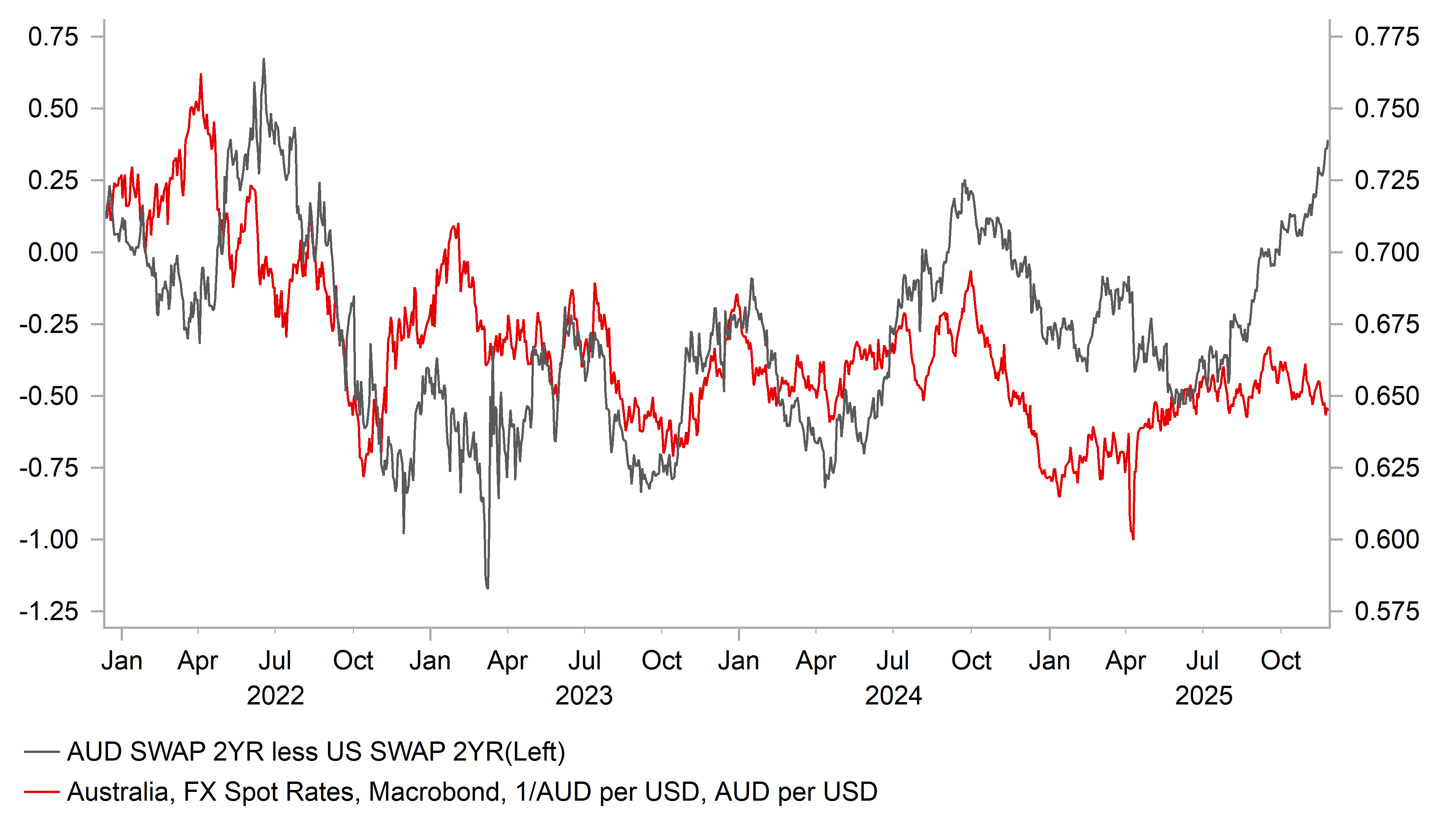 AUSTRALIA SHORT-TERM YIELDS RELATIVE TO US YIELDS FAILING TO PROVIDE AUD/USD SUPPORT FOR NOW