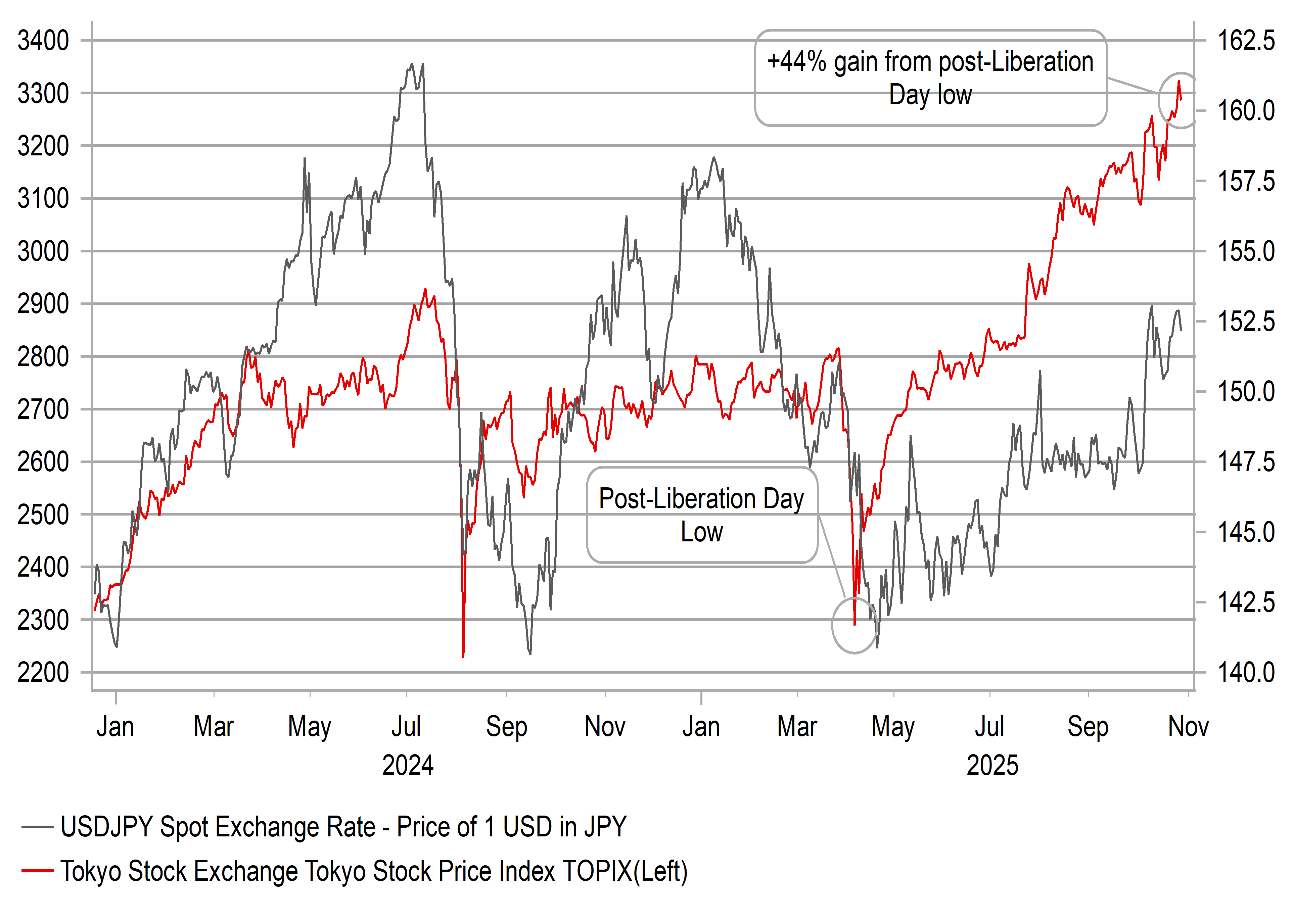 TOPIX INDEX UP 44% FROM POST-LIBERATION DAY LOW