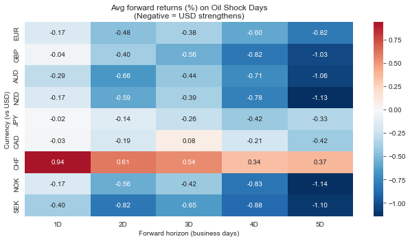 G10 FX RETURNS FOLLOWING A 3-STD DEV MOVE HIGHER IN CRUDE OIL