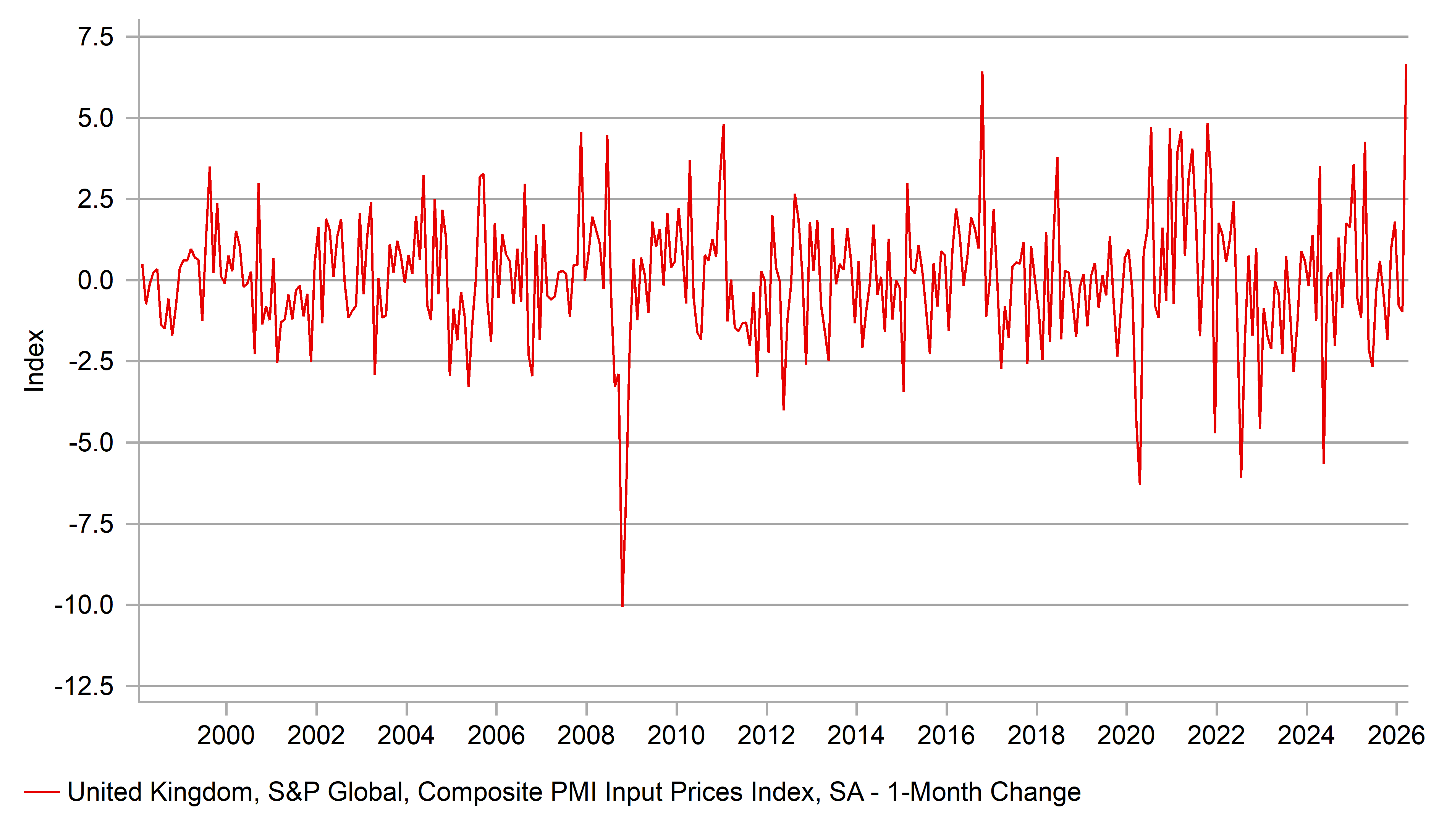 1-MONTH CHANGE IN PRICES PAID IN UK PMI COMPOSITE A RECORD