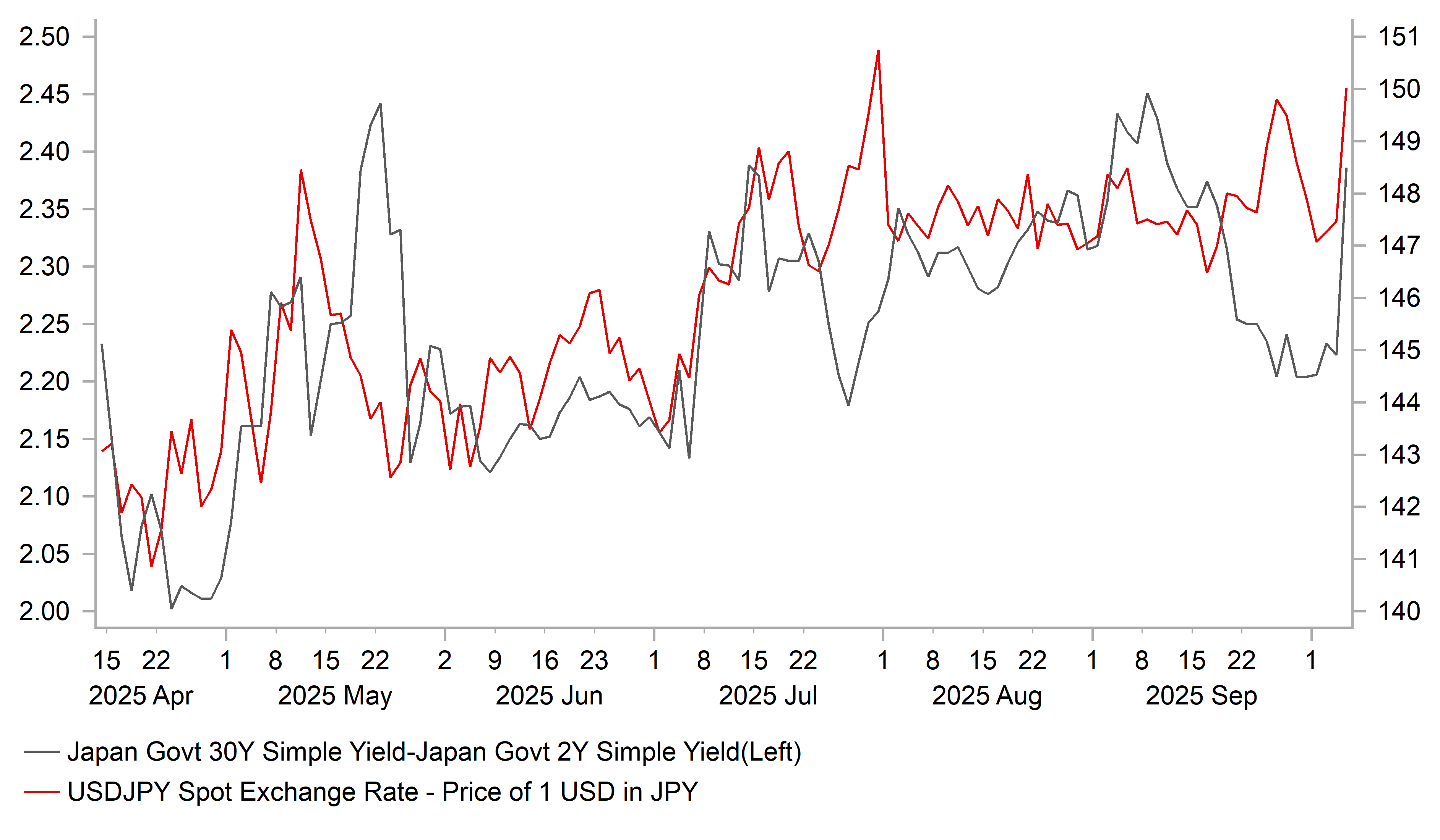 On fiscal policy, Sanae Takaichi has advocated for “responsible aggressive fiscal policies” and has not rued out the possibility of reducing the consumption tax. She has prioritized measures such as abolishing old provisional tax rates on gasoline and diesel fuel, and raising the basic deduction for income tax. As she seeks a coalition with other political parties in Diet where the LDP no longer has a majority in both the Lower and Upper Houses of the Diet, it appears likely that Japan’s budget position will deteriorate further as they put together another supplementary budget. During the Upper House election, Takaichi was the only leadership candidate who considered increasing the issuance of deficit bonds as unavoidable.  The combination of heightened fiscal risks in Japan and risk of delayed or even derailed BoJ rate hike plans will continue to encourage a weaker yen in the near-term unless evidence emerges that those initial policy expectations will not be realized. It may even open the door to a retest of the year to date highs for USD/JPY in the worst-case scenario although that could prove more challenging now with the Fed continuing to cut rates heading into year end. The weaker yen may also start to attract more attention/criticism from the Trump administration keeping pressure on Japan to continue normalizing monetary policy.