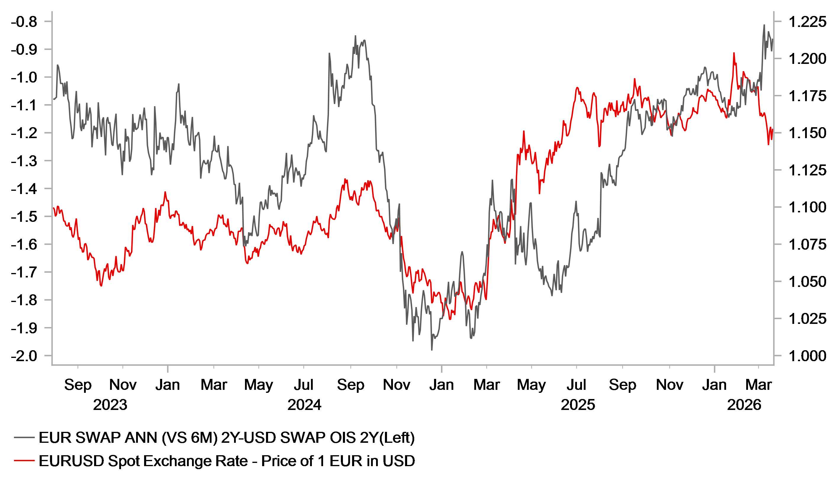 - Markets view: Front-end yields have moved higher as market participants price a greater probability of a rate hike by the ECB. The OIS curve now shows 67bps of rate hikes by the end of the year. Equity markets have declined but not by enough to question the prospect of rate hikes and that is now providing some support for the euro. We still see EUR risks skewed to the downside on the basis that a further worsening of energy supply would like see risk assets fall more sharply that in turn would lessen the extent of tightening and provide renewed support for the dollar.