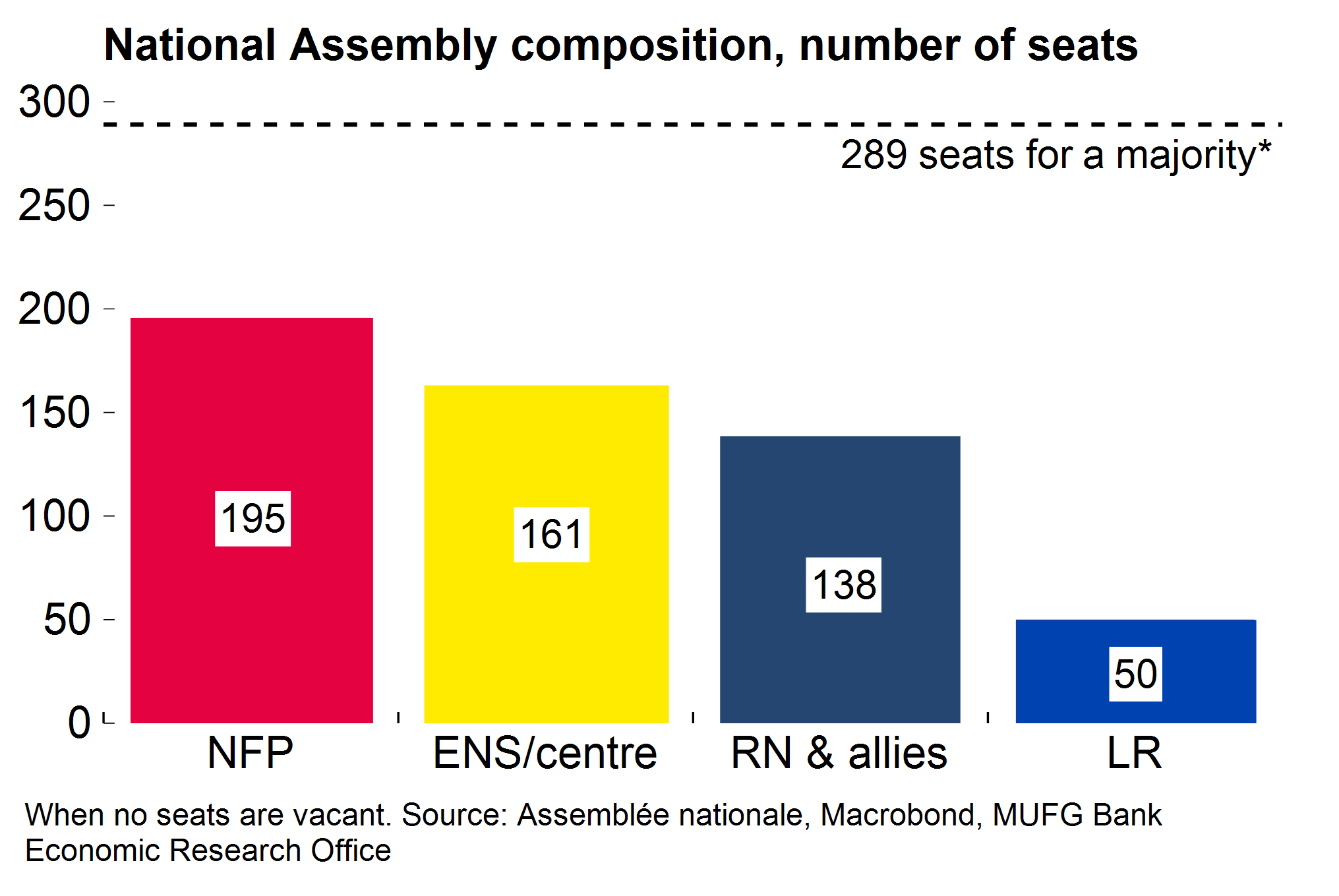 Political uncertainty has weighed on the outlook for France ever since President Macron’s decision to call a snap election in June 2024 resulted in a split National Assembly. An autumn showdown was not exactly a shock given the requirement for tough fiscal action within that fragmented landscape (see here).