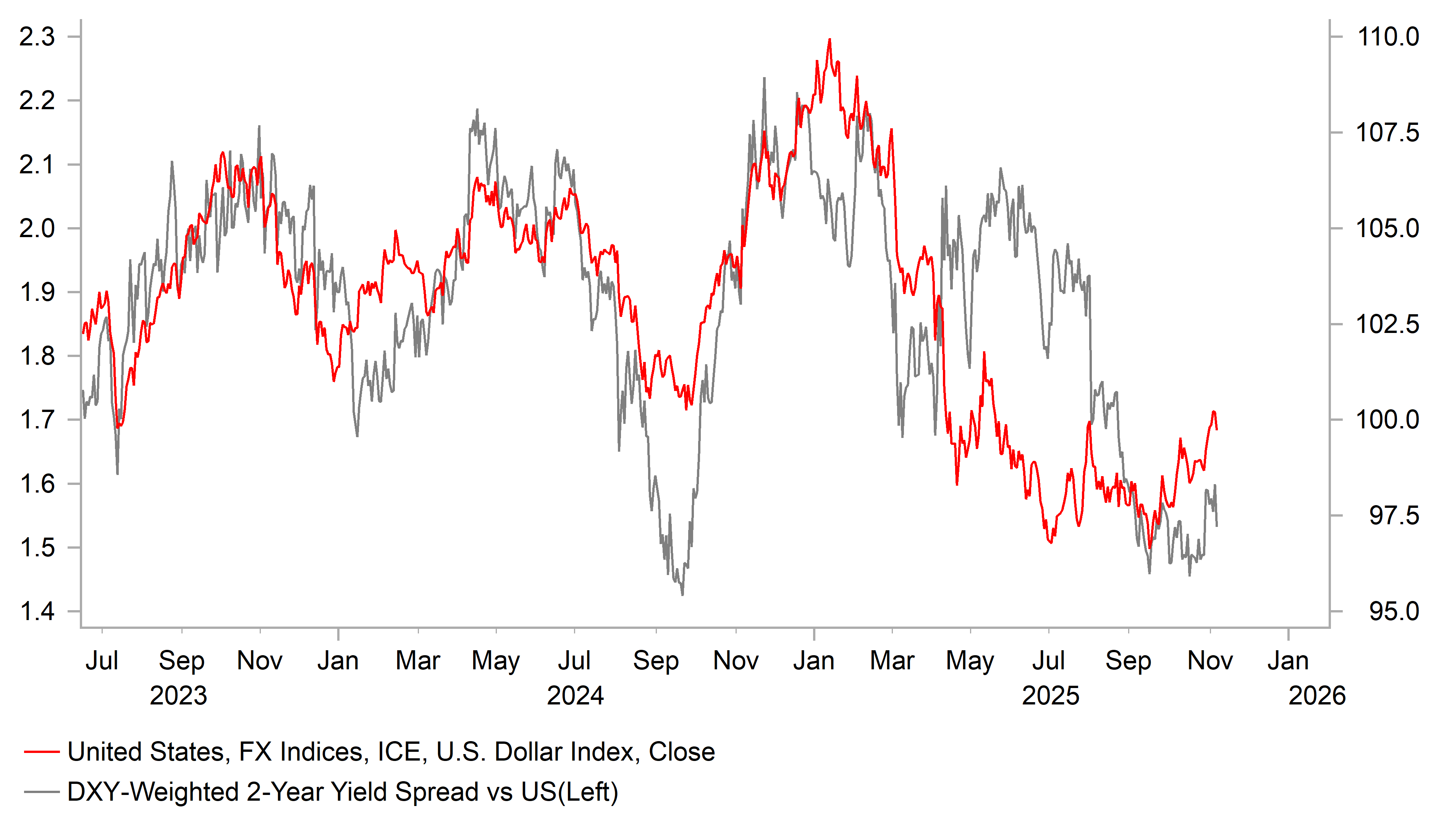 Developments in trade policy will also be important for the dollar. Admittedly, the dollar reaction function is a little more ambiguous on this topic but we would assume increased economic policy uncertainty would be negative for the dollar. The Supreme Court hearings this week of the legality of IEEPA being used for reciprocal tariffs globally certainly revealed a high level of scepticism that points to the Supreme Court voting against the use of IEEPA and against Trump’s ability to raise new sources of tax revenues without the consent of Congress. We may get a ruling by year-end or early in the new year. The Trump administration is no doubt preparing for this scenario now and we suspect other trade acts will be utilised to replace lost revenue by as much as possible. The most obvious is Section 122 which would allow for a 15% tariff (max) to be implemented in order to address balance of payments deficits for a period up to 150 days. Given a large number of countries are currently under a 15% reciprocal tariff this looks the easiest immediate action for Trump to take. Of issue could be the countries that do not run deficits may have to be excluded. Legal challenges would be likely but it would buy the administration time to reassess alternatives.