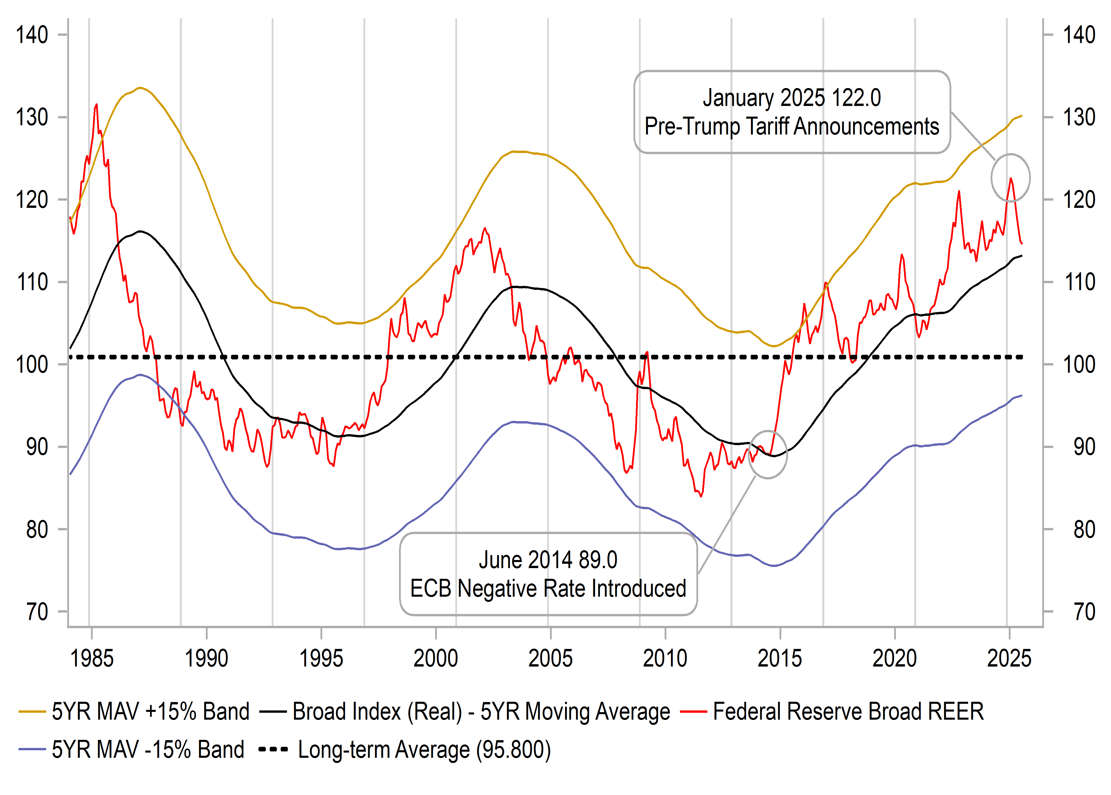 DESPITE USD CORRECTION WEAKER IN H1 REER REMAINS 15% STRONGER THAN LONG-TERM AVG