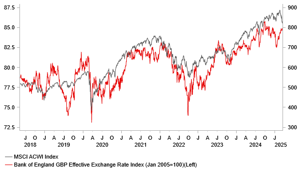 Market expectations for BoE policy have recently been relatively more stable than for the ECB. The UK rate market is still expecting the BoE to stick to the current quarterly pace of rate cuts by delivering the next rate cut in May (17bps of cuts priced in) and then again in August (38bps of cuts priced in). However, there is less confidence that rates will fall further below 4.00% by the end of this year. It is helping to keep yields in the UK at higher levels than on offer in other major economies providing support for the GBP. The BoE holds their latest policy meeting next week. Ahead of that meeting UK economic data has been improving with the exception of today’s softer UK GDP report for January. Overall it points to strengthening growth momentum since late year. At the same time the slowdown in services inflation and wage growth remains frustratingly slow. It will become more uncomfortable for the BoE to keep cutting rates heading into the summer when inflation is expected to temporarily pick up towards 4.0%. Overall, the GBP remains attractive. A deeper sell-off for global equity markets that undermines financial stability poses the main downside risk for the GBP.