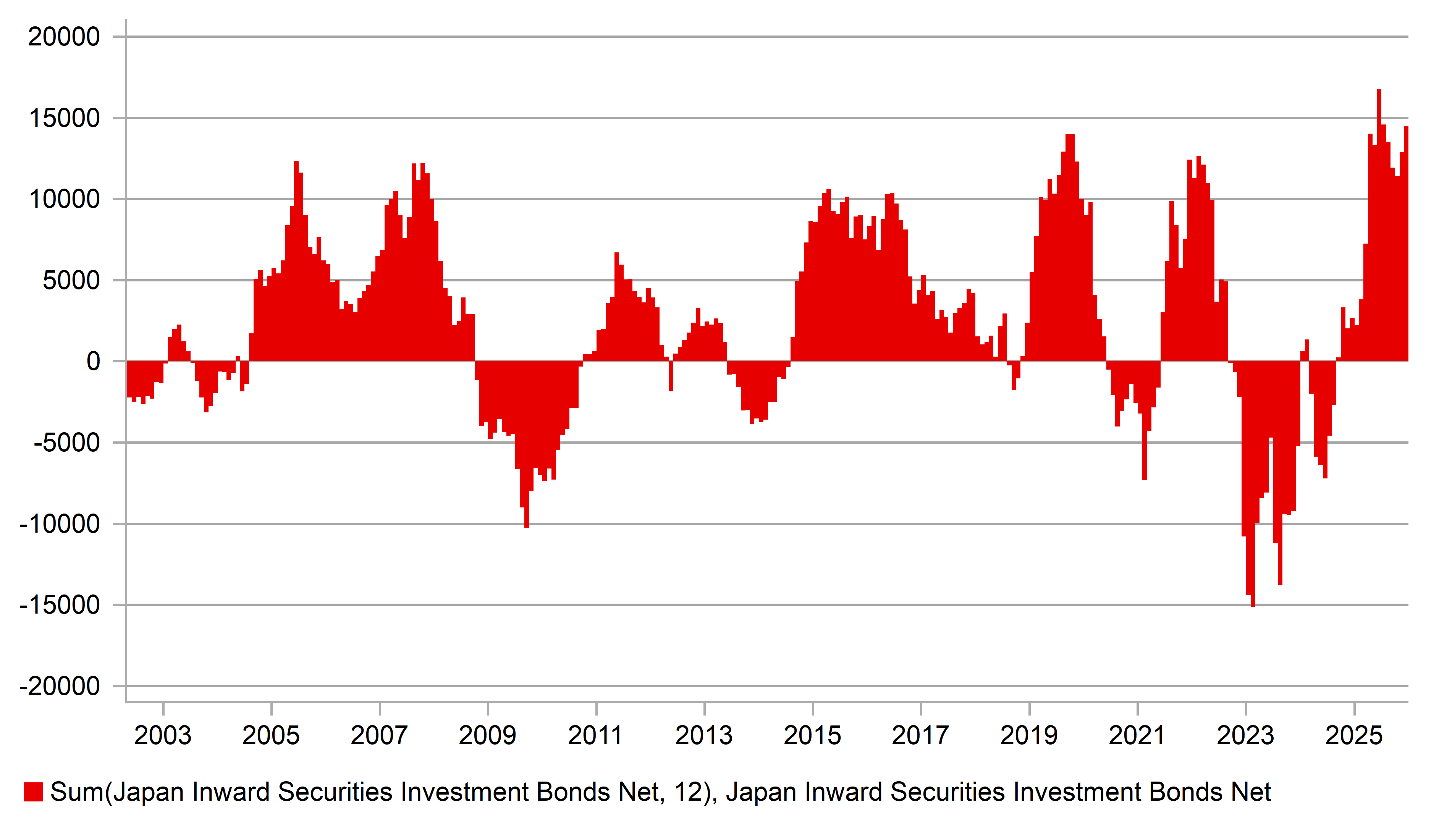 The December International Transactions in Securities was released last week which highlighted the strong foreign investor buying of JGBs in 2025.