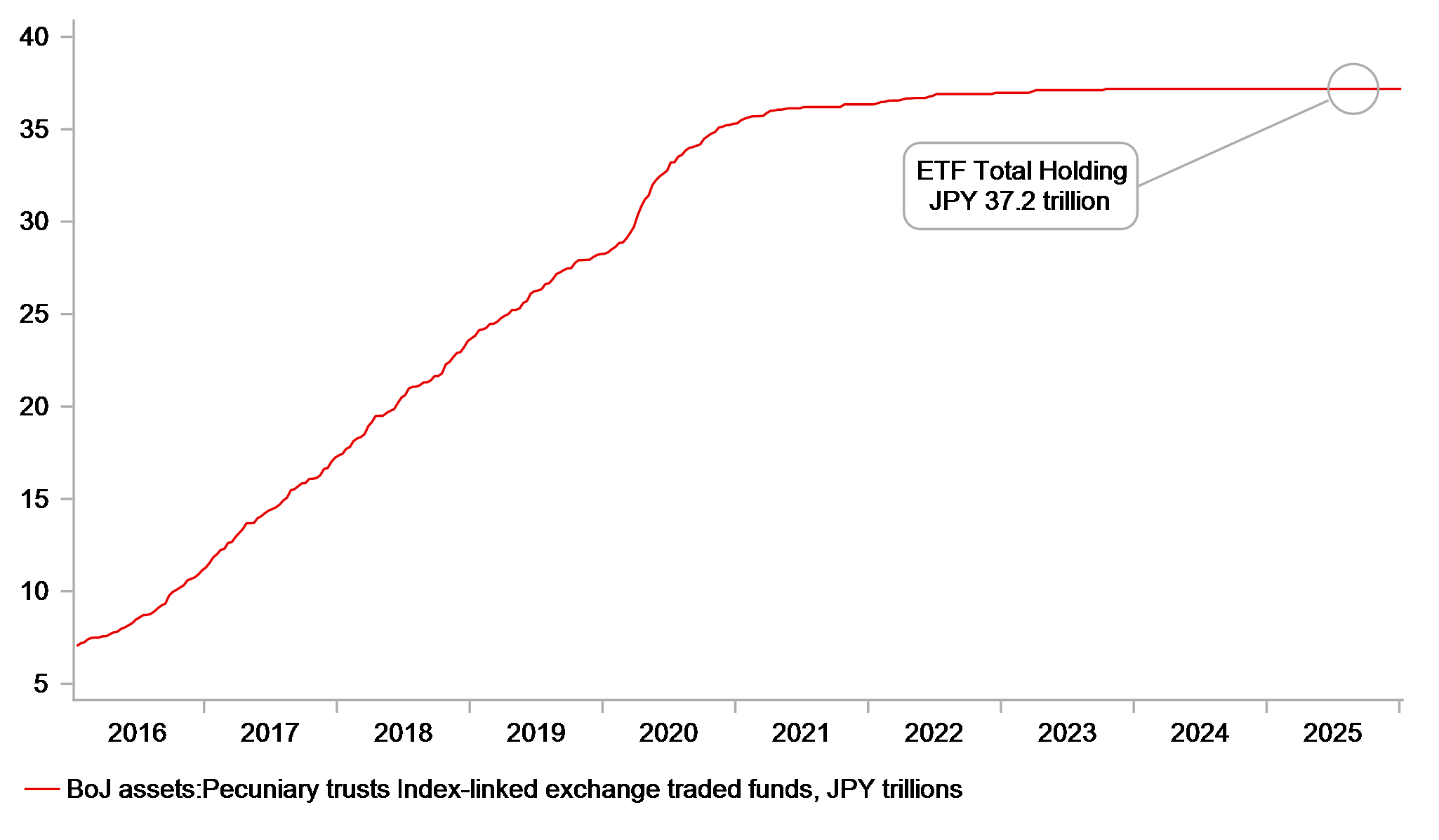 Today also saw the commencement of BoJ ETF sales that had been previously announced at the September 2025 policy meeting. Then the BoJ reported book value holdings of JPY 37.1trn and a market value of JPY 83trn. The plan is to conduct sales at a very slow pace – just JPY 330bn per year, implying that this would take around 112 years to complete. Still, these sales will help from a government fiscal position standpoint with sales locking in a handsome profit after strong equity market gains in recent years. Bloomberg estimates that first-year sales will realise about JPY 1.4trn in profit that equates to about 1.7% of planned government revenues.