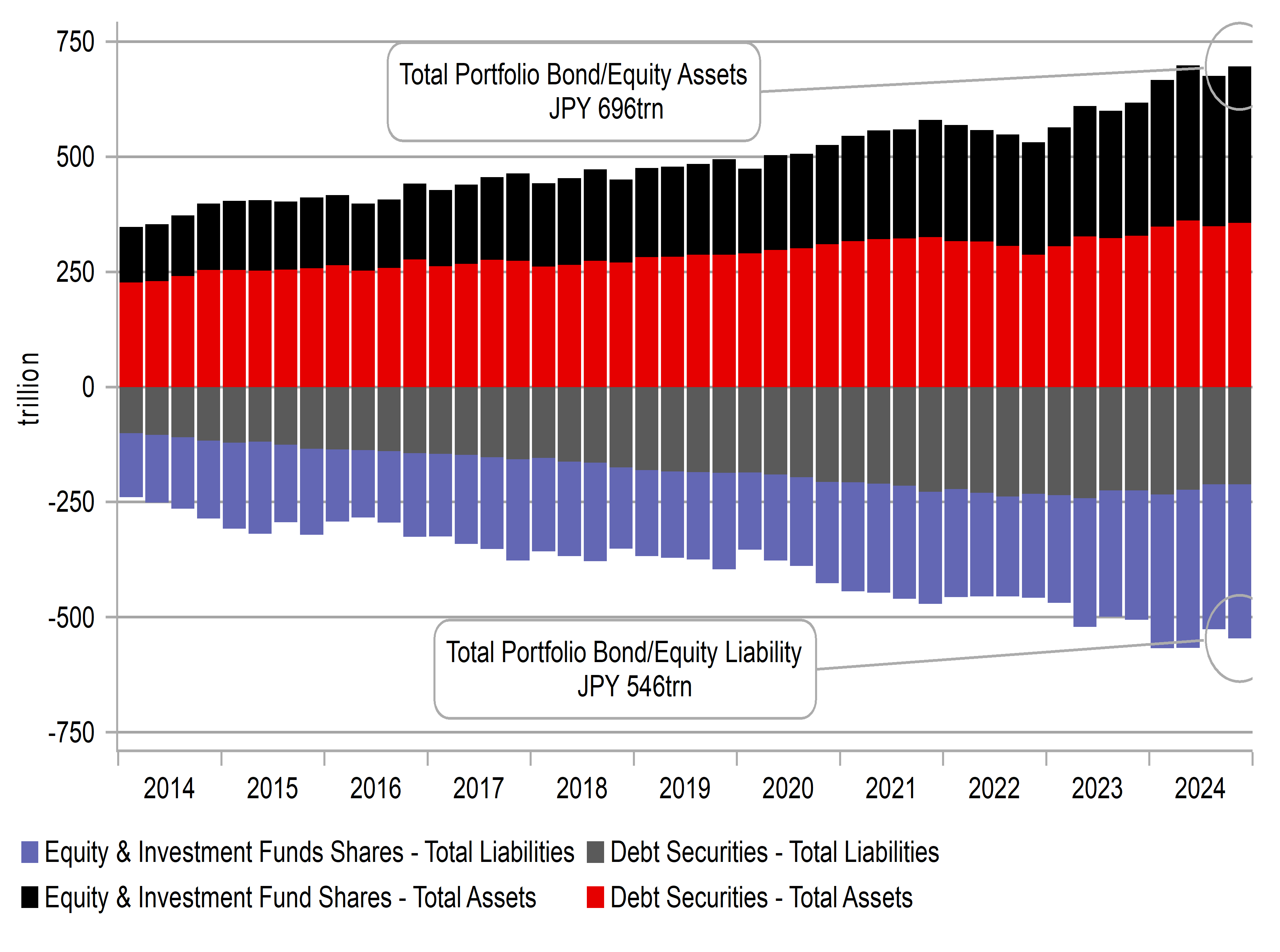 JAPANESE INVESTORS OWN NEARLY JPY 700TRN WORTH OF FOREIGN BONDS AND EQUITIES