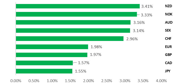 Source: Bloomberg, 16:15 GMT, 23rd January 2026 (Weekly % Change vs. USD)