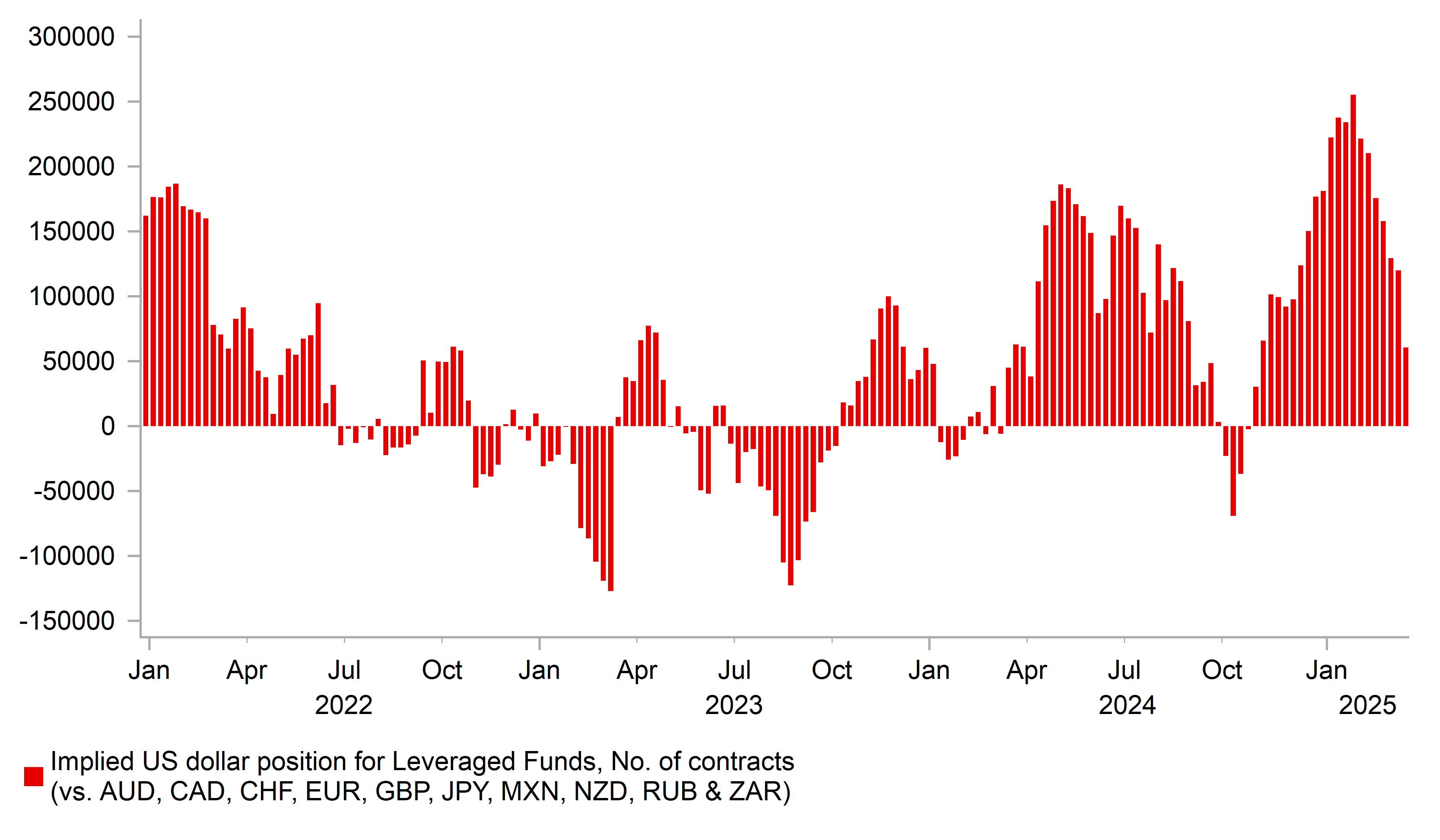 The sell-off of the US dollar from the intra-day high in January to the low in March amounted to 6.5% (DXY basis) although nearly half of that move (3.0%) took place in just three trading days as market participants responded to the German fiscal expansion plans. China also announced policy stimulus plans that same week while the US economic data flow has disappointed. So there were some justified relative macro developments that warranted the reversal of the US dollar not related to trade tariff expectations. Over the period since mid-January CFTC positioning data indicates that Leveraged Funds have cut long dollar positions by nearly 75% and long dollar positions are now the smallest since October last year. So the FX market is now much more position-neutral and hence we see much better potential for some recovery if investors begin to reassess the negative impact on economic conditions outside the US. If you narrow down the above trade deficit countries to the top ten which could be treated most harshly, six are in Asia (China; Vietnam; Taiwan; Japan; S. Korea; and India); two are in Europe (Germany and Ireland) and then the two USMCA countries (Canada and Mexico). The countries that saw the biggest increases in trade deficits with the US (2024 vs 2023) were Taiwan (+52%); Ireland (33%); and S. Korea (27%). These are the currencies where we see risks of bigger sell-offs vs the dollar.